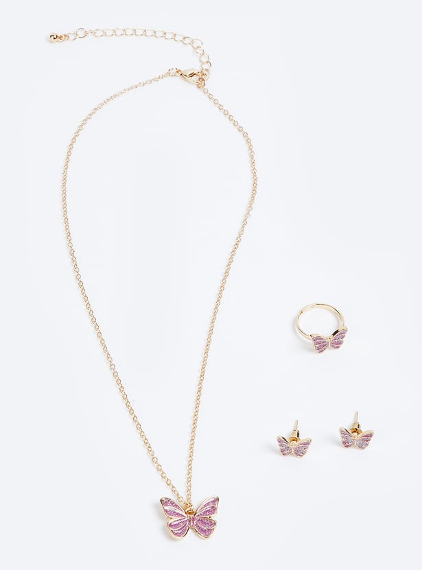Girls Butterfly Necklace Set with Ring