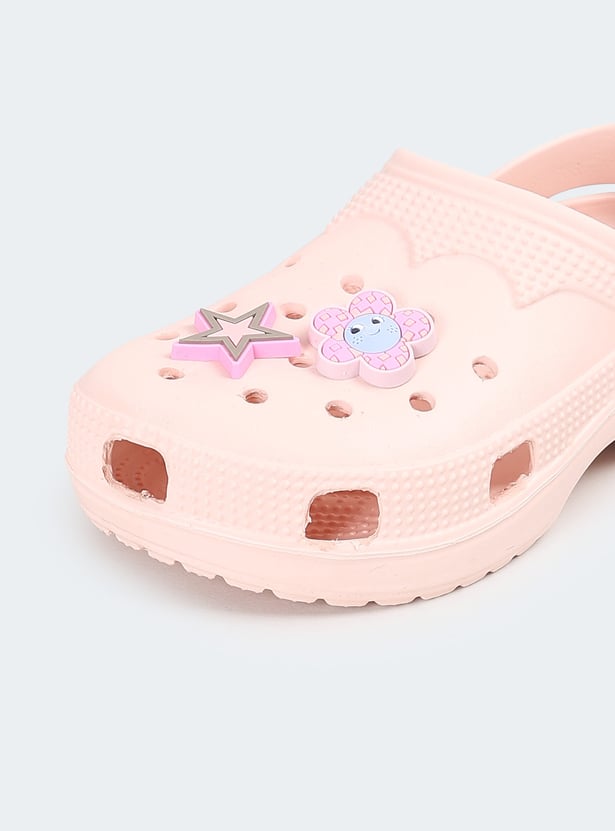 These floral charm-detailed clogs feature a sling-back strap for a secure and comfy fit. Perfect for adding a pop of colour to your casual looks.