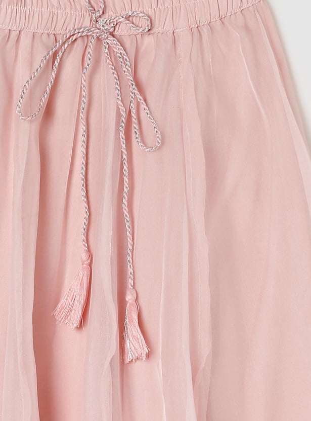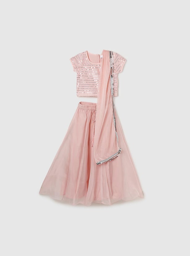 Girls Embellished Blouse with Elasticated Lehenga and Dupatta