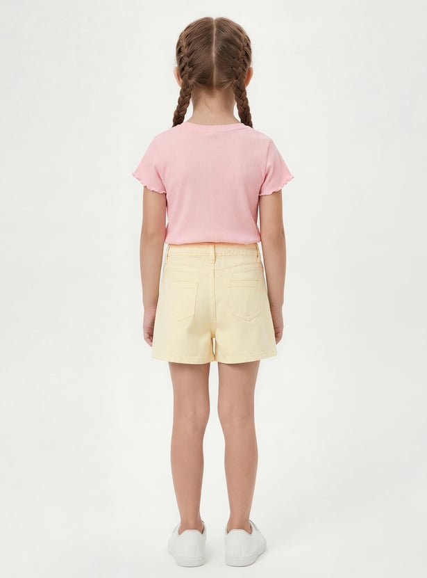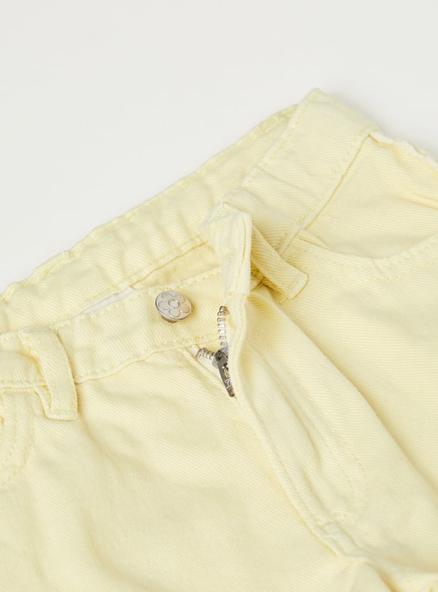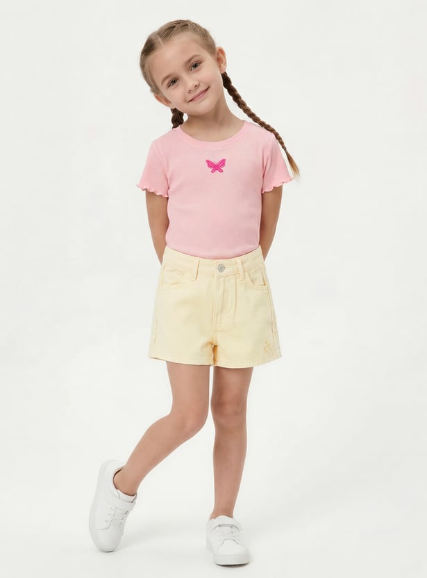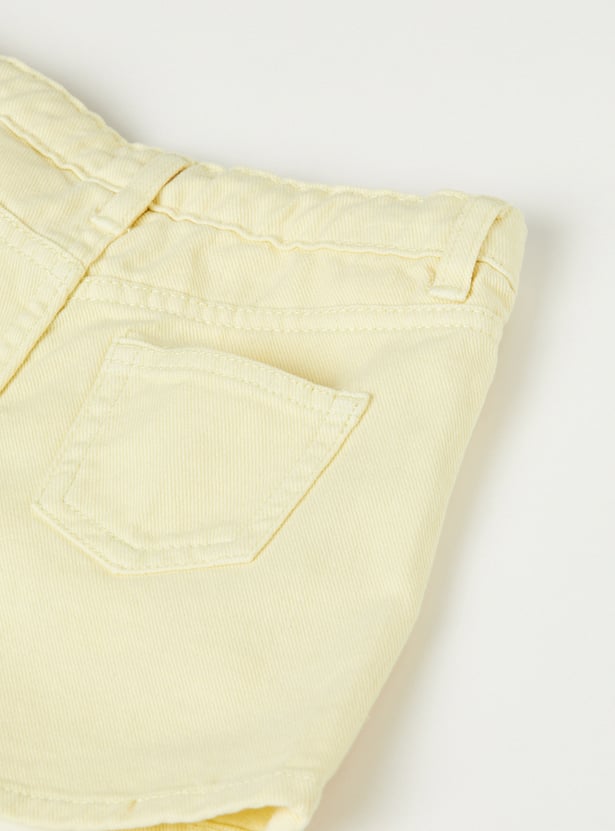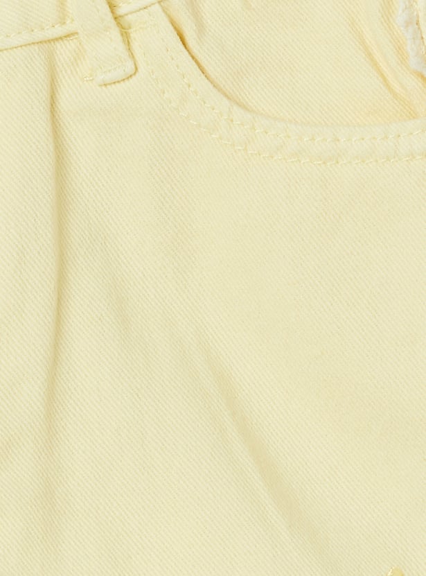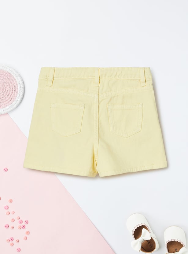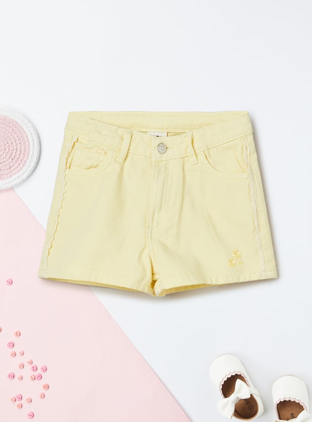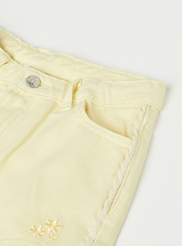This embroidered pair of shorts is designed with a buttoned waistband and insert pockets.