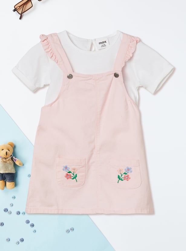Girls Embroidered Pinafore Dress with T-shirt