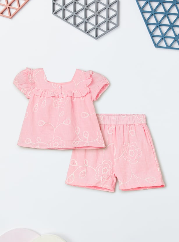 Girls Embroidered Shorts Set