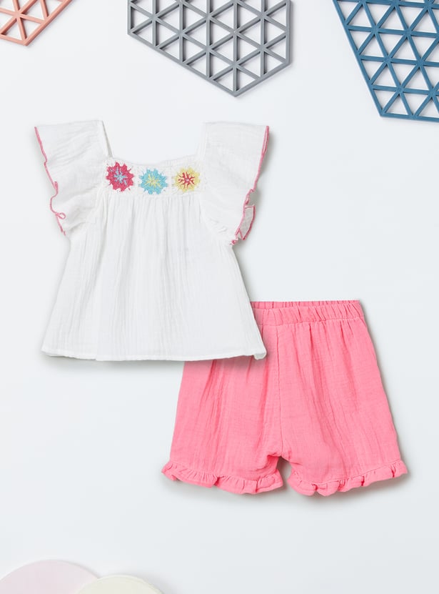 Girls Embroidered Shorts Set