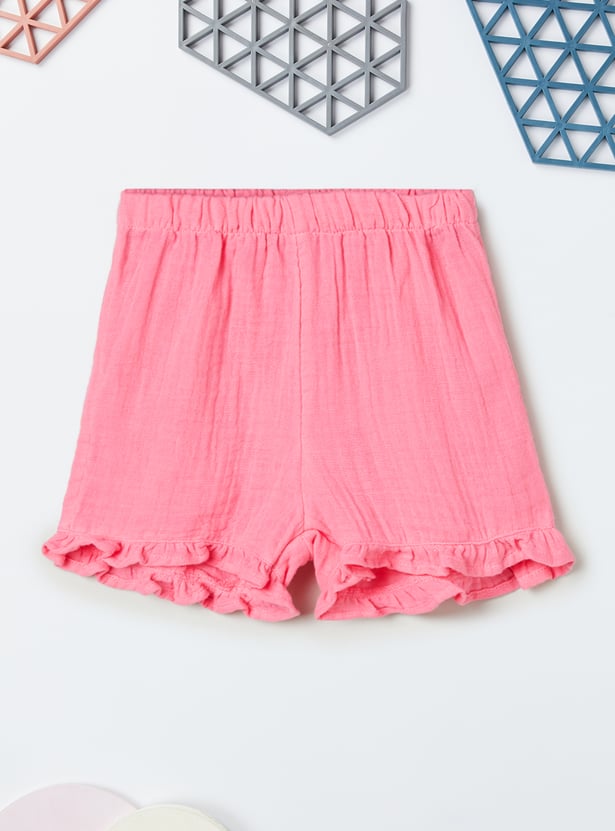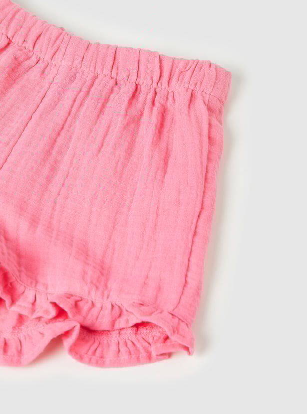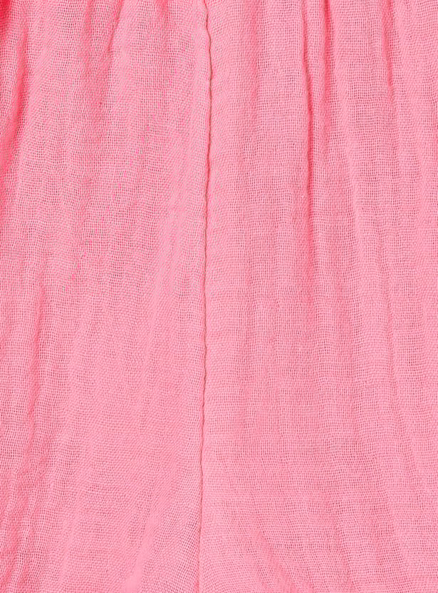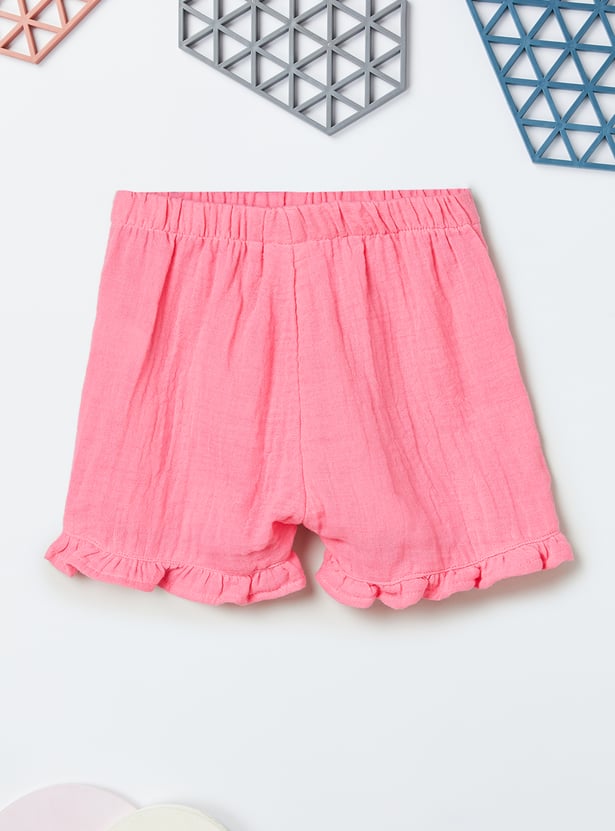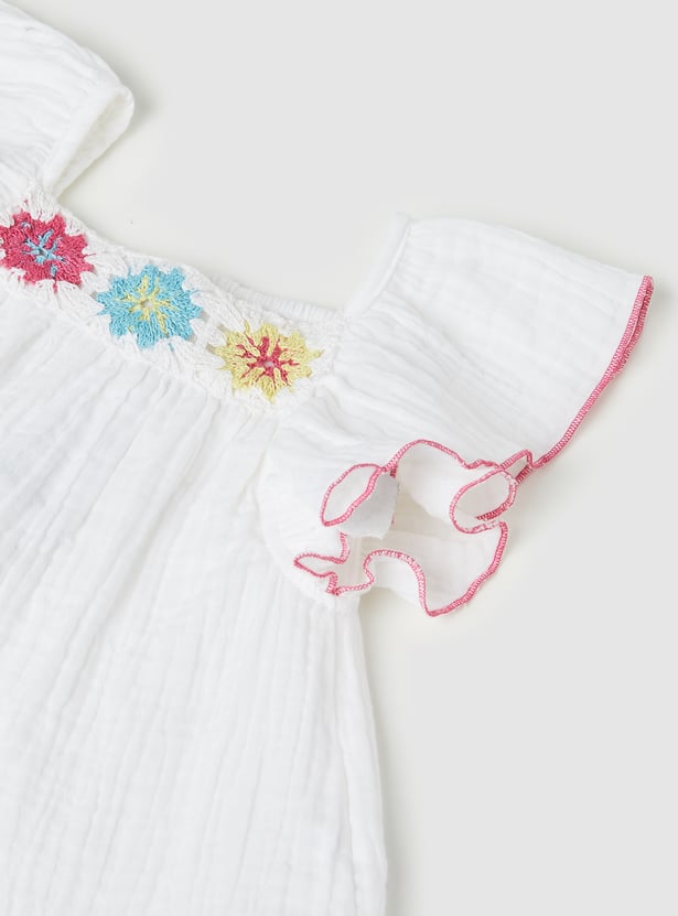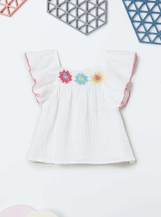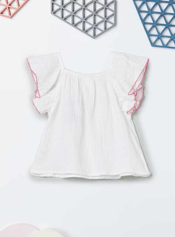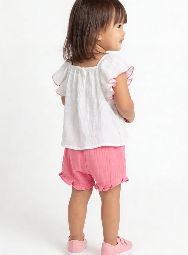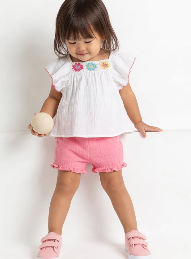 Add a fun twist to her summer style with this charming set featuring a square‑neck top with flutter sleeves and delicate embroidery details. Paired with solid shorts designed with an elasticated waist, it blends playful elegance with everyday comfort.
