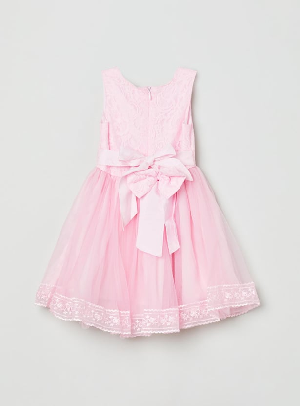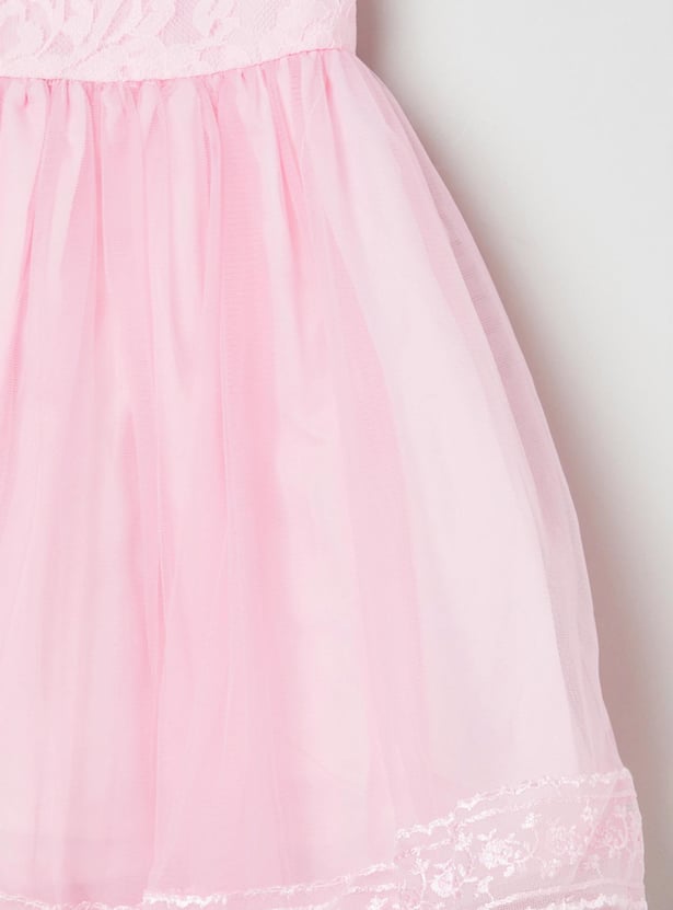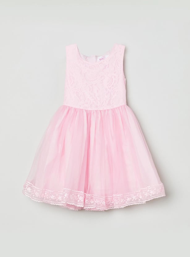 Designed with lace detail, this fit and flare dress comes with a round neck, sleeveless design and an A-line silhouette to complete your little one's lively look.