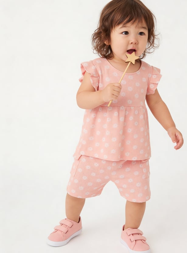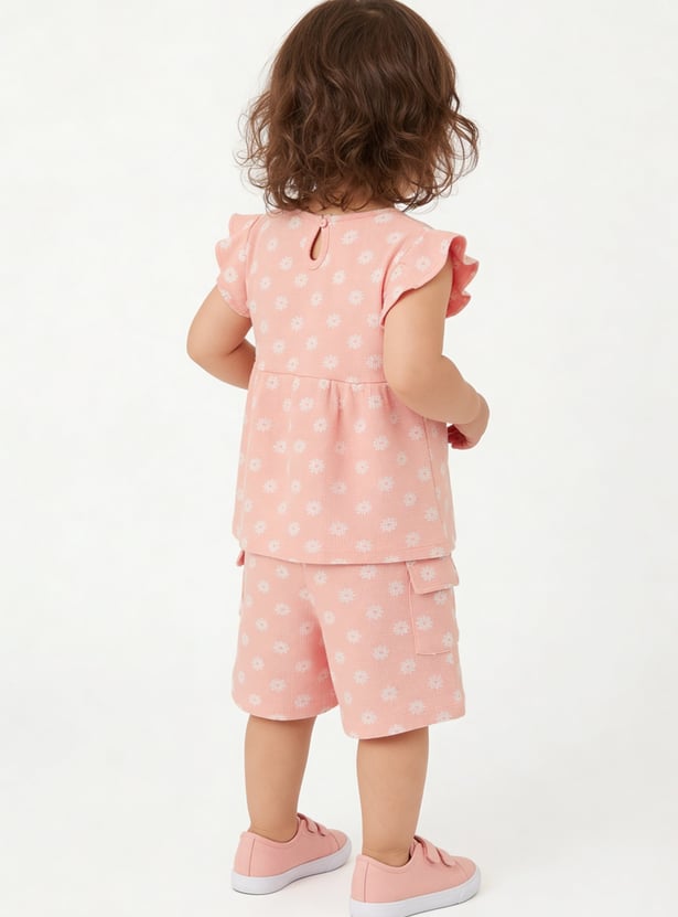 Girls Floral Print Shorts Set
