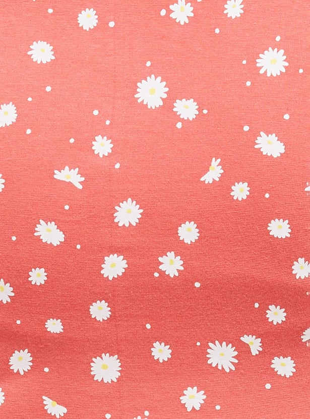 Girls Floral Printed Bodycon Dress with Tie-Detailed Hem