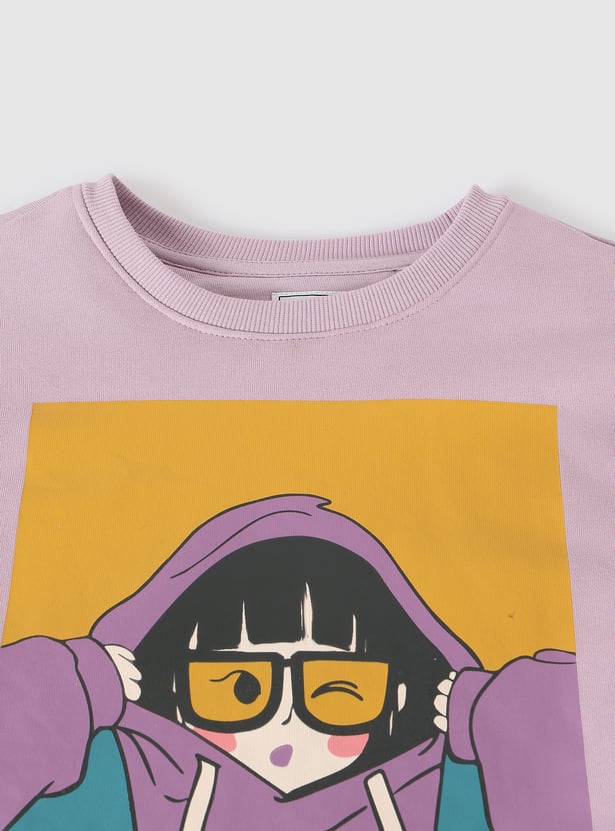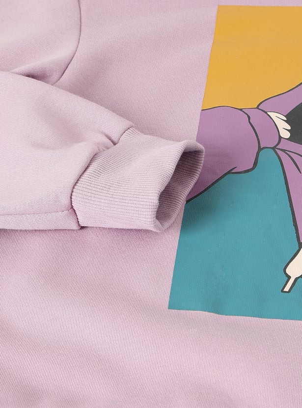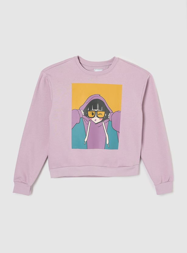 Keep your kid warm and cosy in this sweatshirt while they step out to play during the winter. It features a charming graphic print, a round neckline, full sleeves, and a ribbed hem, making it both stylish and snug for chilly days.