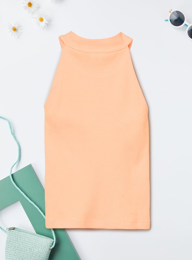 This knit top features a chic halter neck design and sleeveless cut, perfect for warm-weather days. Its breathable fabric offers comfort while keeping you stylish.