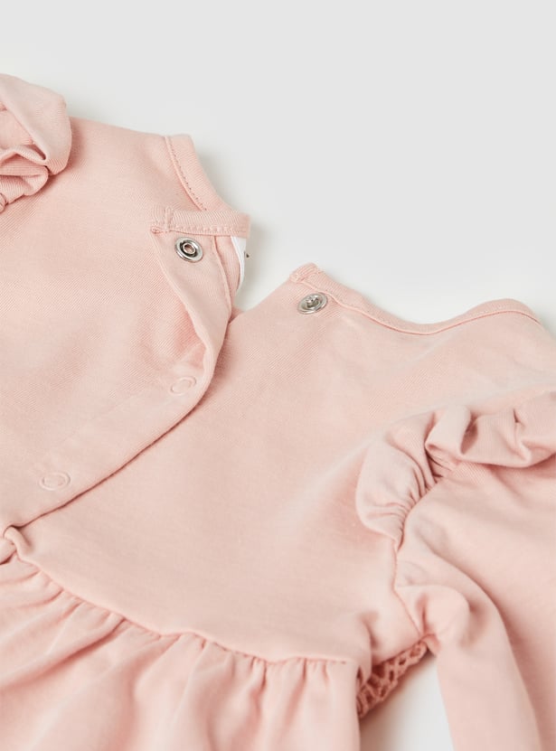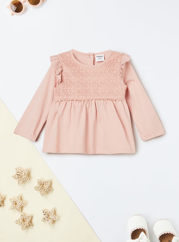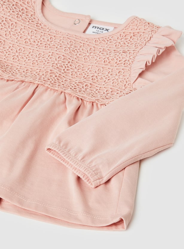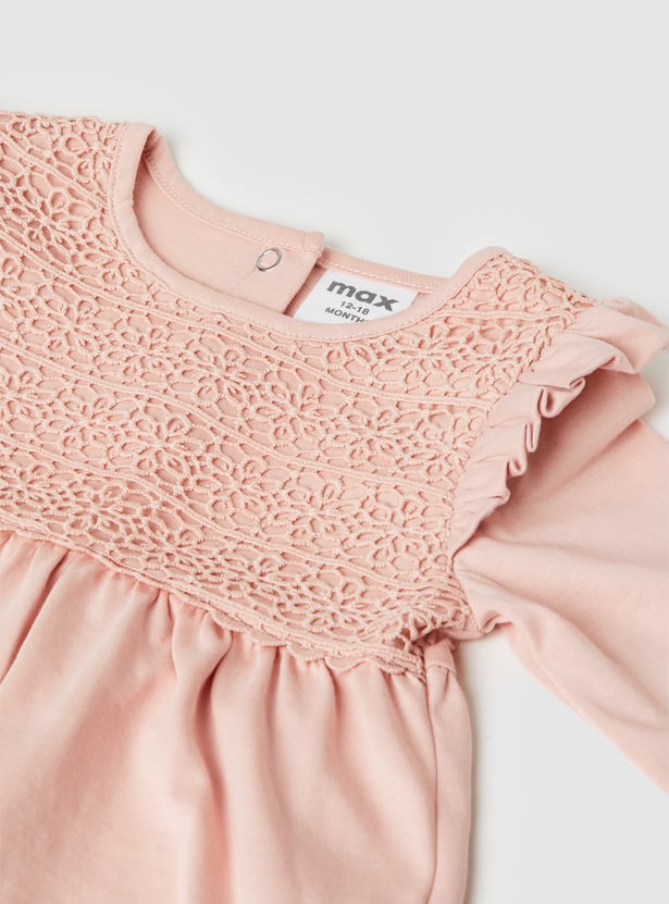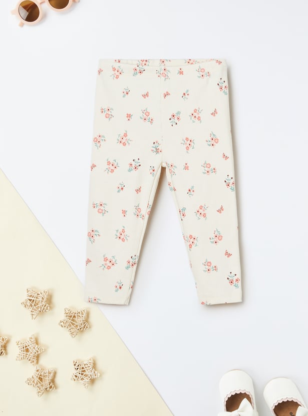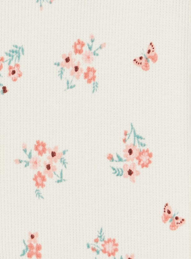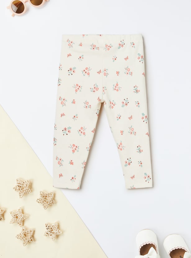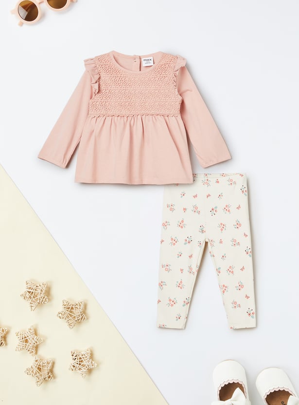 Stay cozy and cute with this lace leggings set — includes a round neck, full sleeve top with button closure, paired with floral print leggings featuring an elasticated waist for a comfy fit.