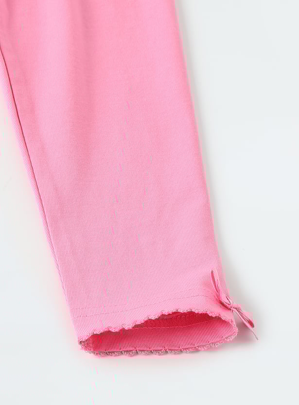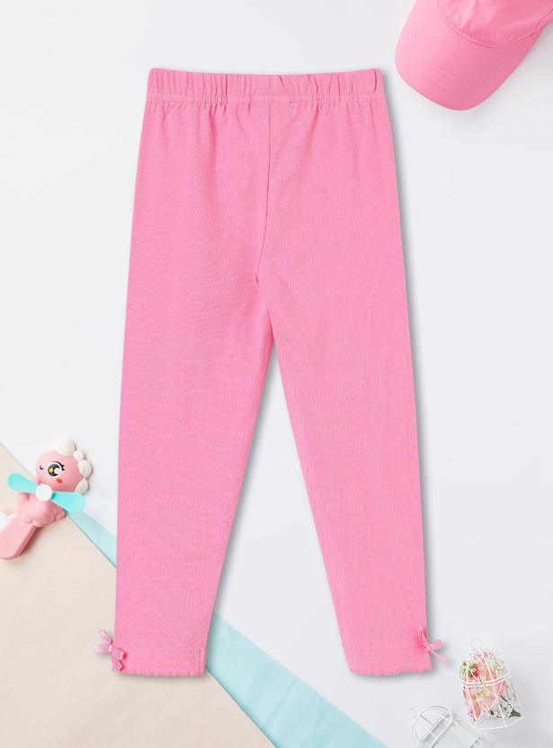 Twist on classic style, this pair of leggings brings comfort and cuteness to every outfit. The charming bow details at the hem with scalloped trim add a playful flair to her look.