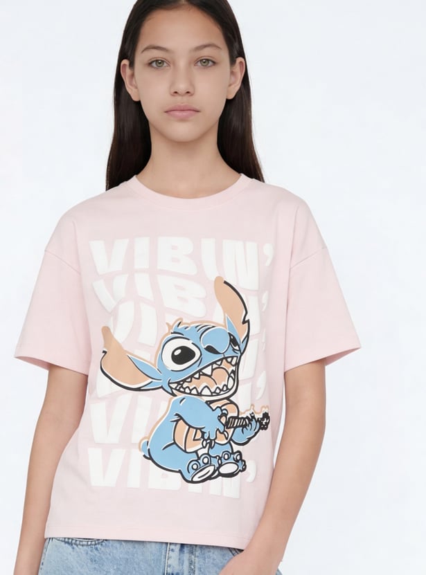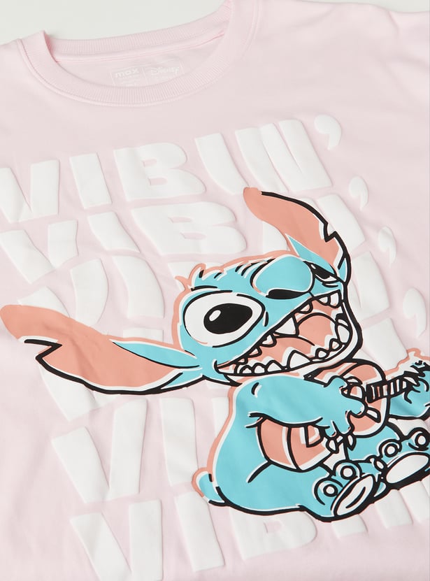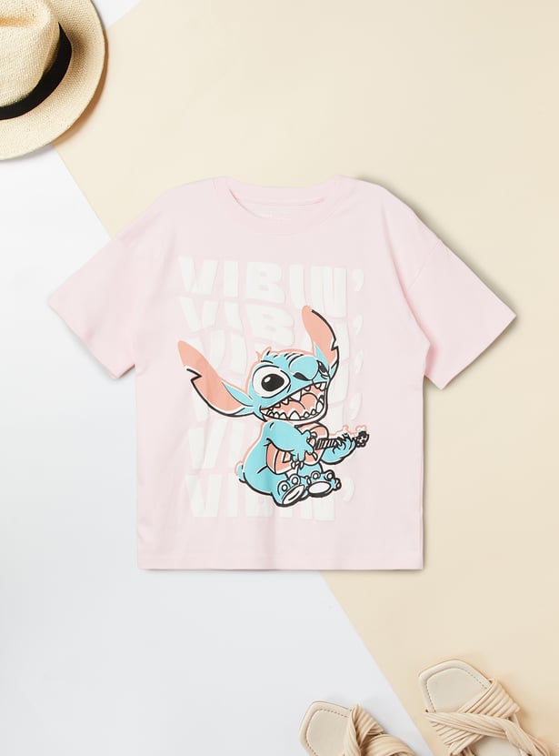 Add a playful touch to your wardrobe with this Lilo & Stitch t-shirt. Featuring a round neck and half sleeves, it blends everyday comfort with the fun, adventurous charm of the beloved Disney duo.