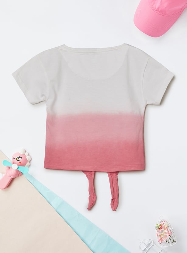 Bring island vibes to your style with this Lilo & Stitch print top, featuring a round neck, half sleeves, and a fun tie-up hem. Perfect for fans of the lovable duo, it adds a playful touch to any casual look.