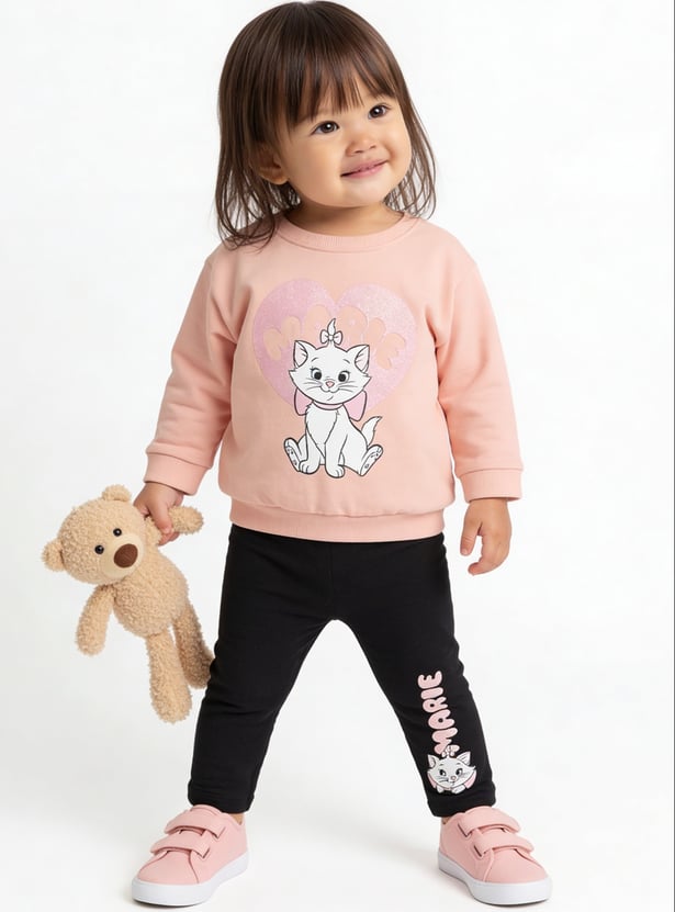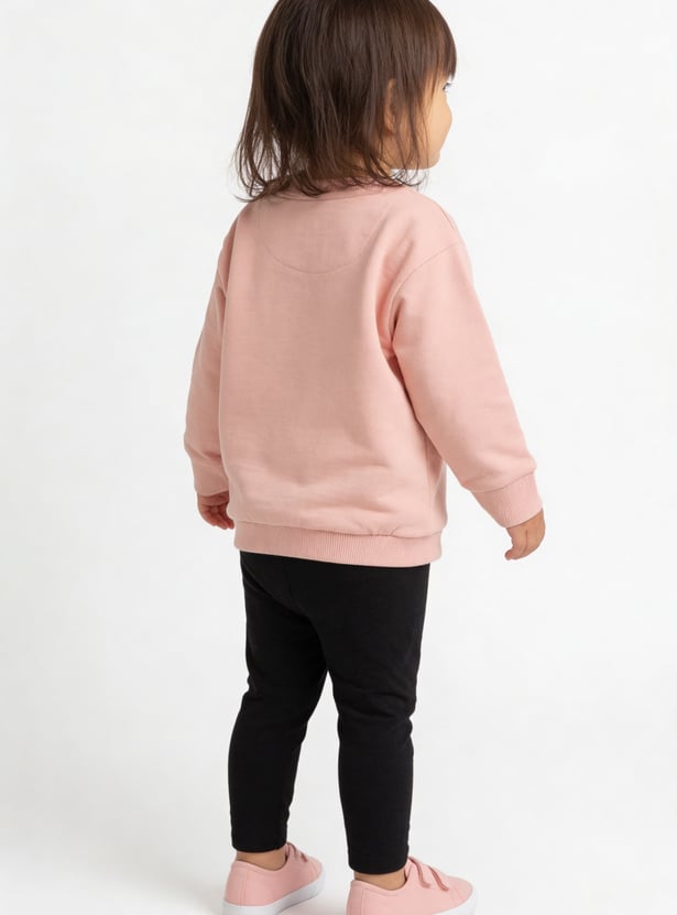 Step into casual comfort with this printed leggings set. The sweatshirt features a crew neck and full sleeves, paired with leggings designed with an elasticated waist for ease.