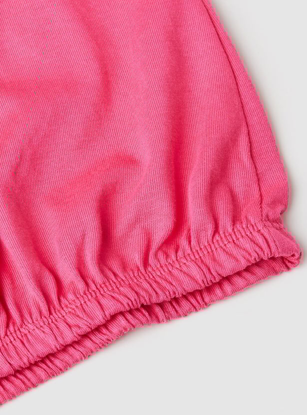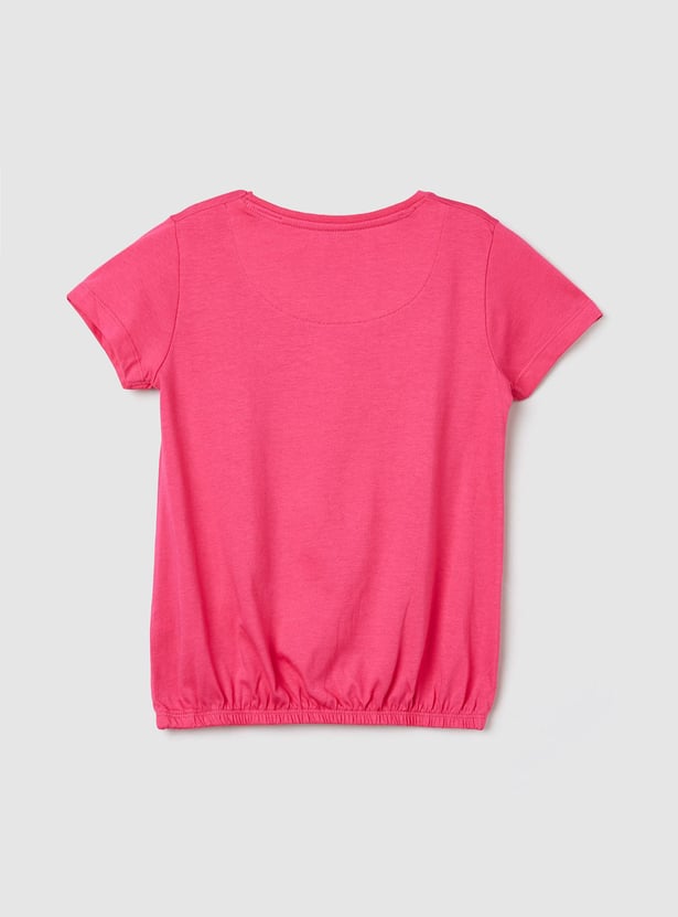 Brighten her day with this T-shirt. A perfect casual wear option, it is highlighted with Minnie Mouse graphics on the front, a round neck, short sleeves, and an elasticated hem.