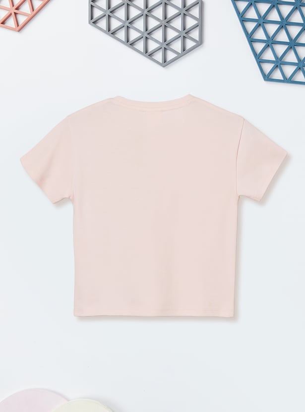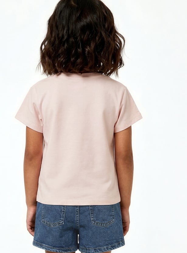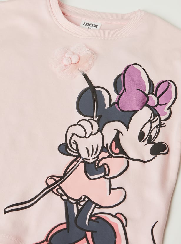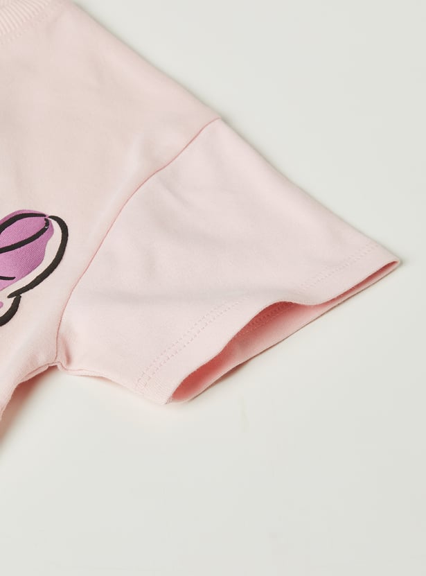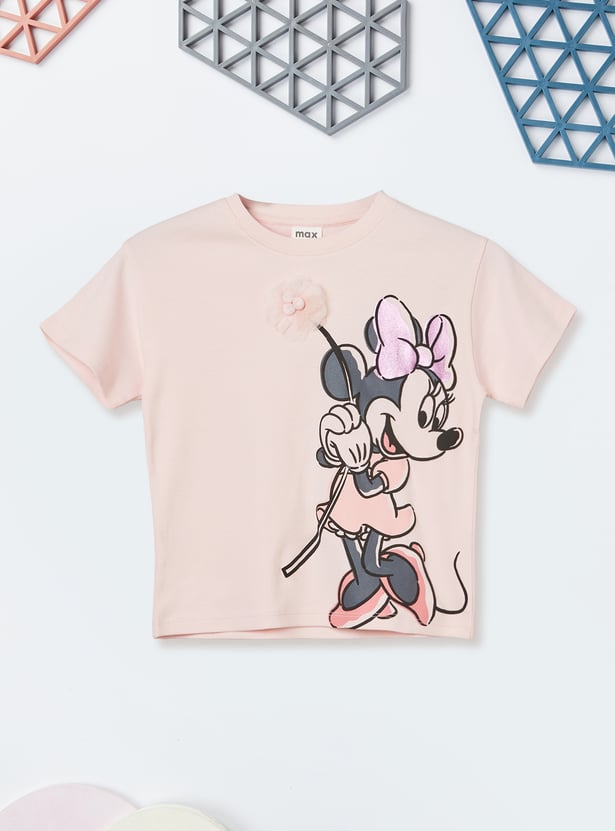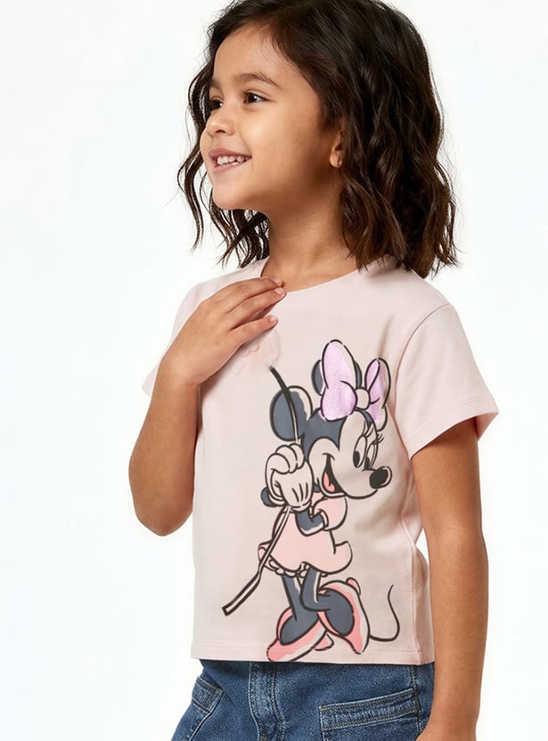 Add a playful touch to her wardrobe with this classic tee featuring a fun Minnie Mouse graphic. Designed with a round neckline and half sleeves, it blends everyday comfort with cheerful character style.