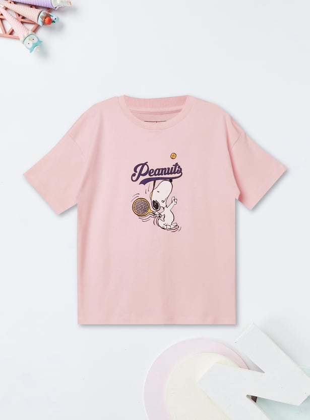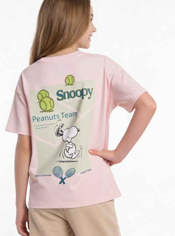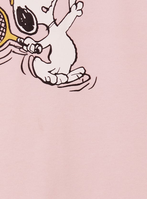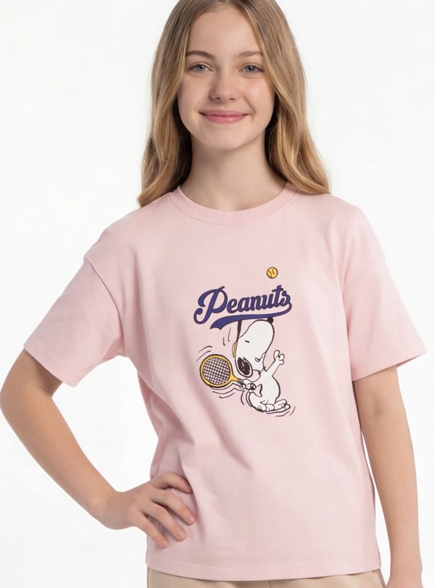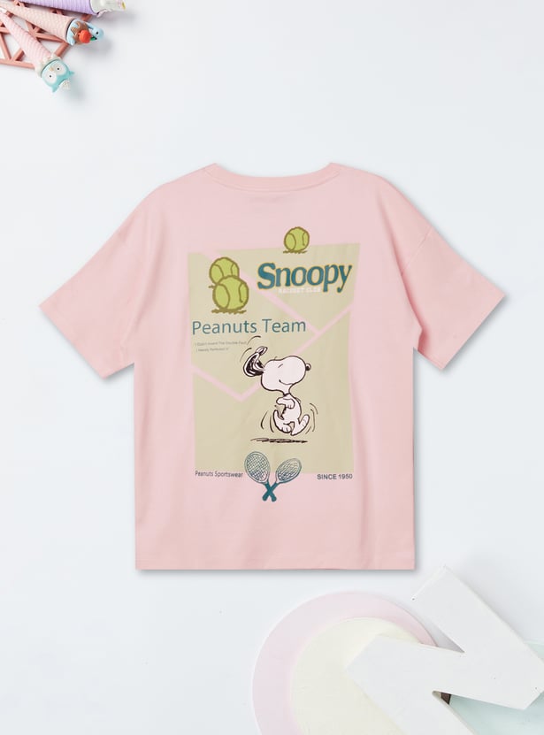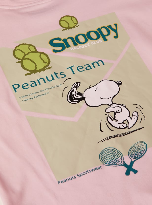 Add a playful oversized staple to your wardrobe with this Peanuts t-shirt. Featuring a round neck and half sleeves, it combines relaxed comfort with the timeless charm of Snoopy and the gang.