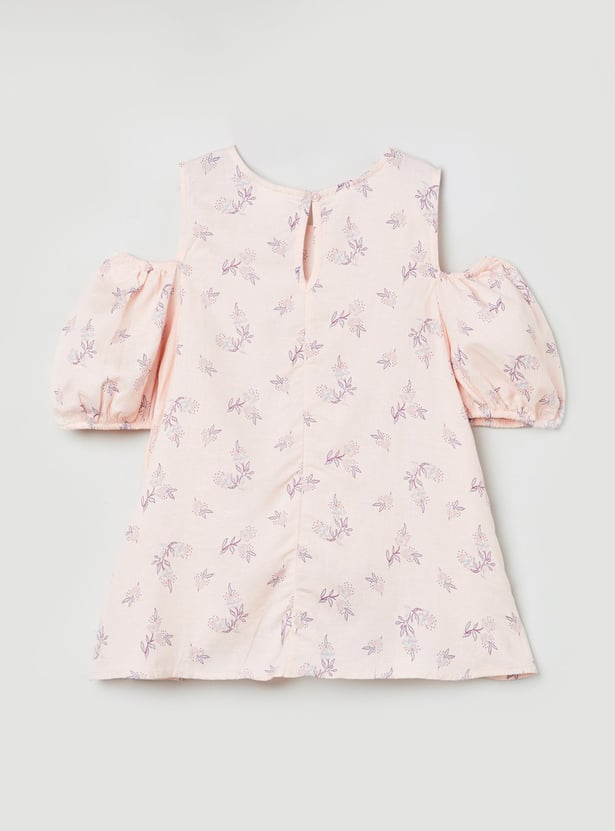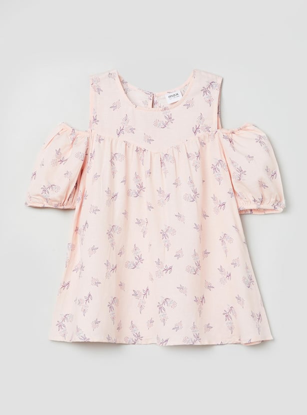 Give your little one comfortable attire with this top that comes with floral prints and cold shoulder sleeves.