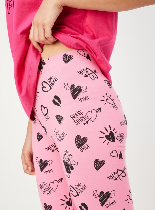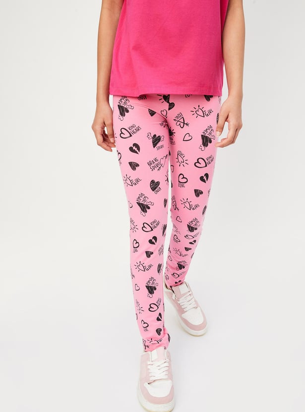 Refresh your kid's casual style with these leggings an elasticated waist, all-over heart prints, and a full-length profile.