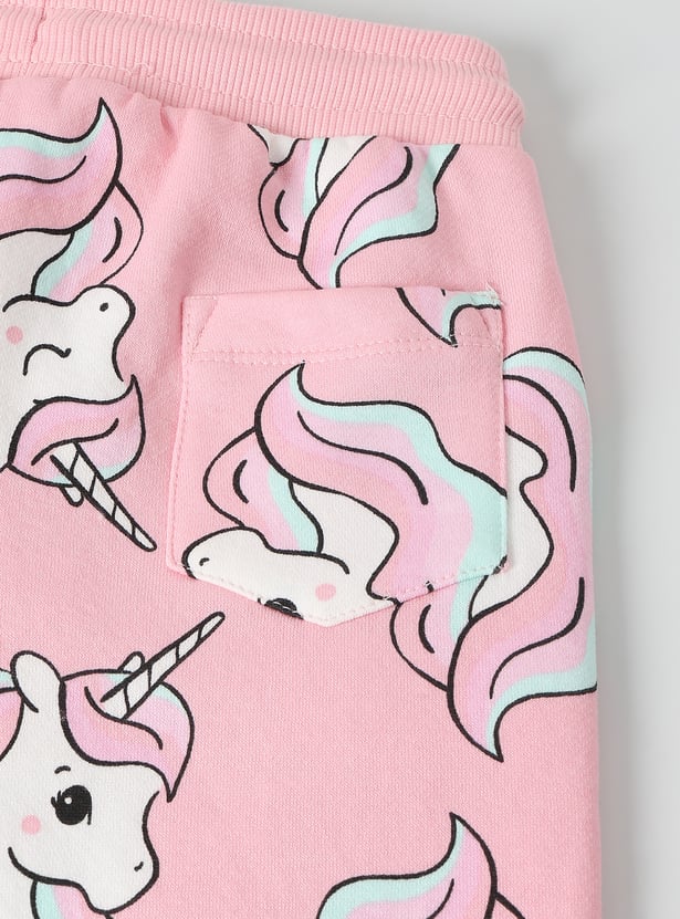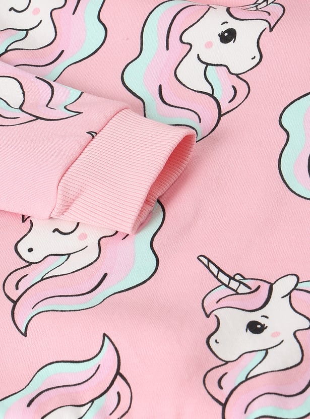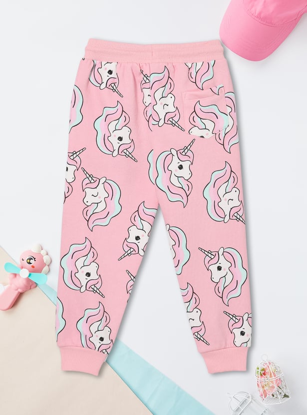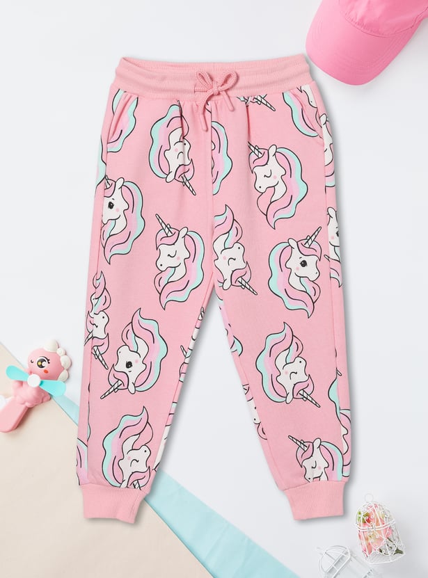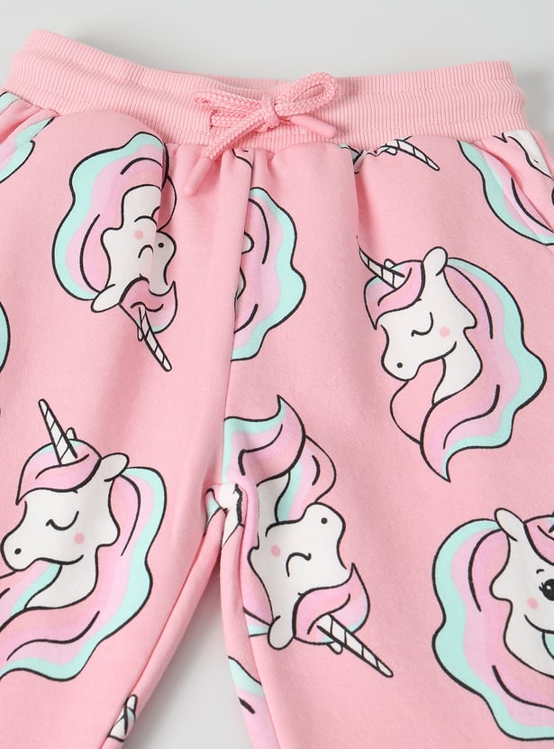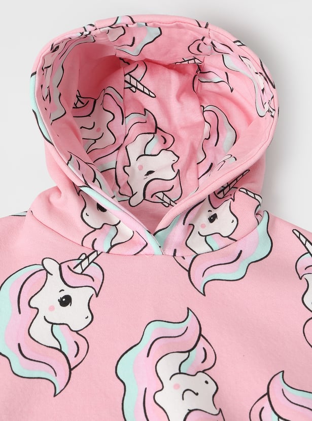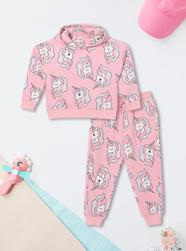 Keep the look coordinated with this printed joggers set. The set includes a hooded T-shirt with full sleeves, paired with joggers featuring a drawstring closure and practical pockets.