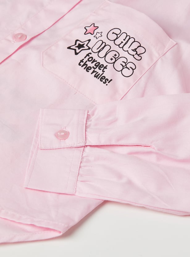 Add a twist to your classics with this back print regular fit shirt, featuring a spread collar, button placket, and full sleeves with button cuffs. A patch pocket adds function, while striking back embroidery gives it a standout edge.