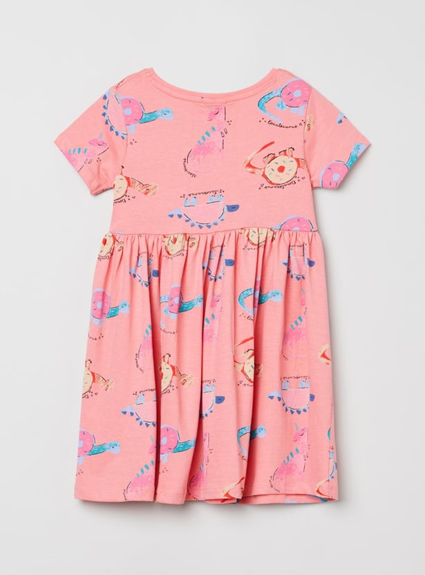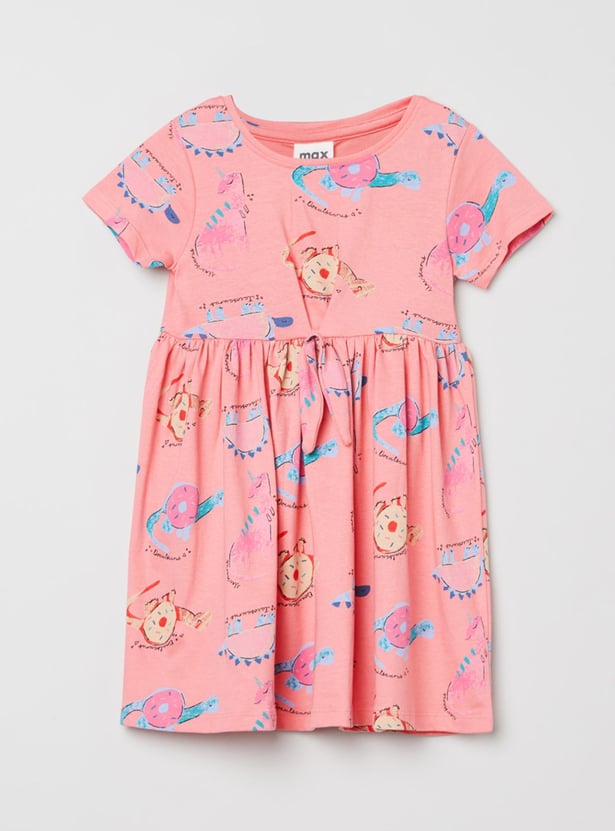 Girls Printed Round Neck A-Line Dress