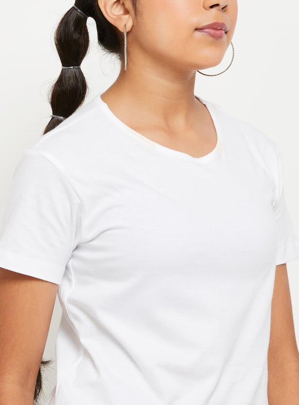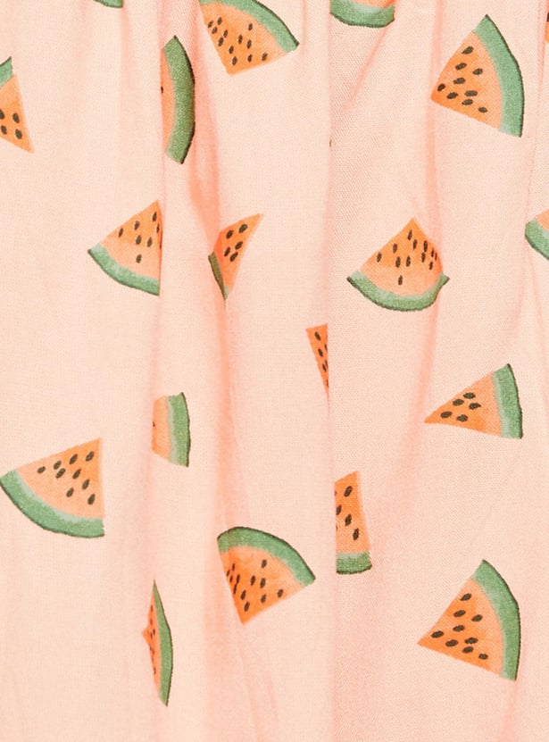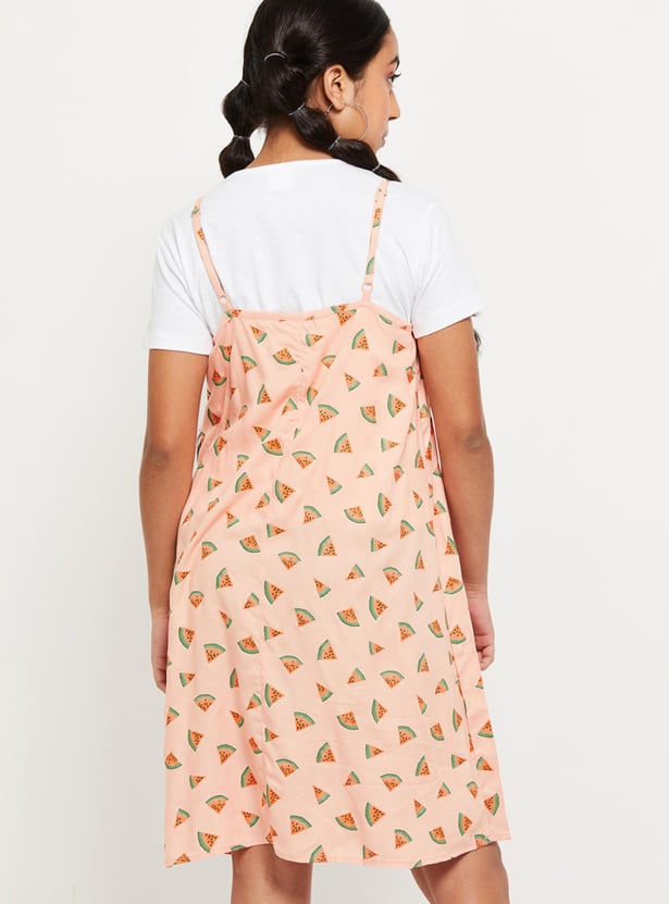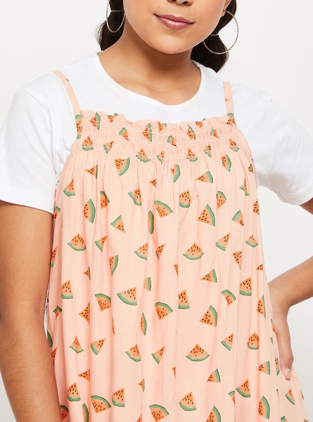 Girls Printed Sleeveless A-Line Dress With T-shirt