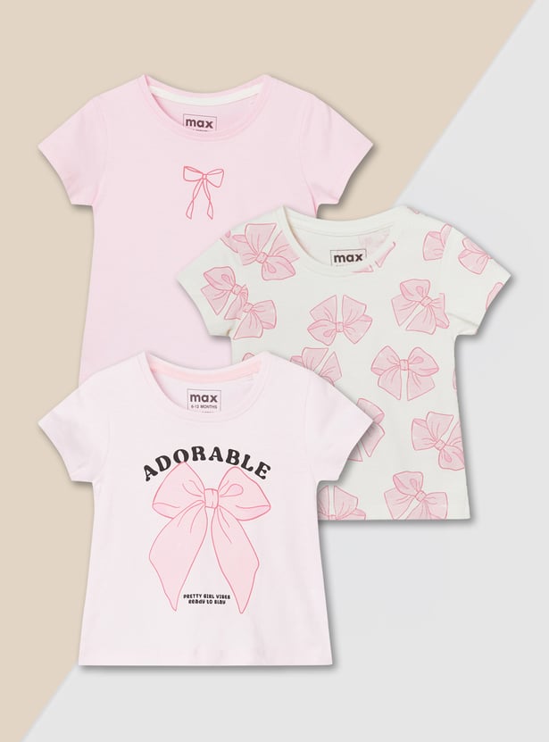 This pack of 3 printed T-shirts offers a stylish and comfortable addition to any wardrobe. Featuring a round neck and half sleeves, they are perfect for everyday wear.
