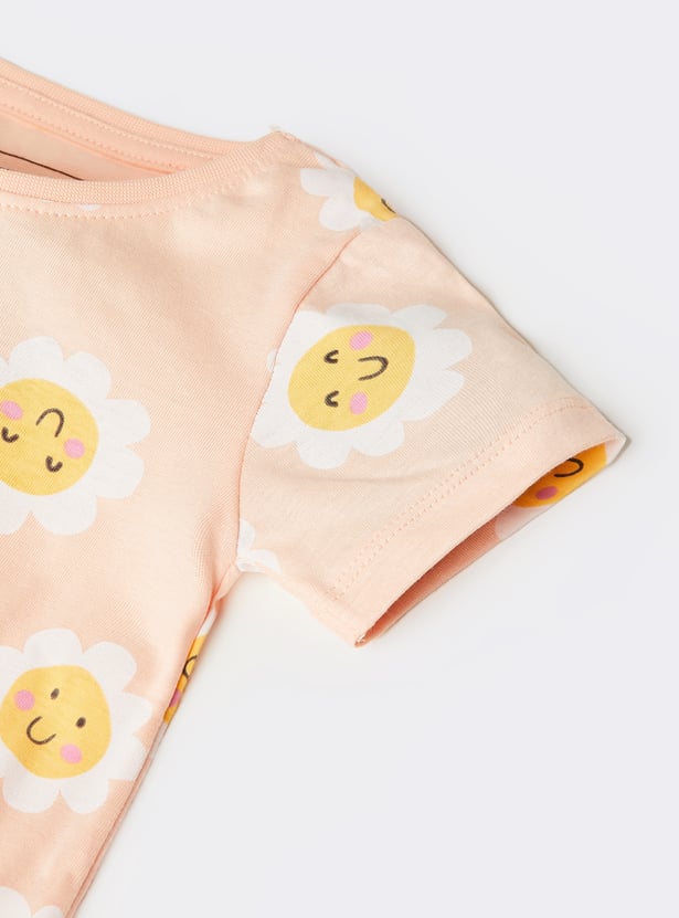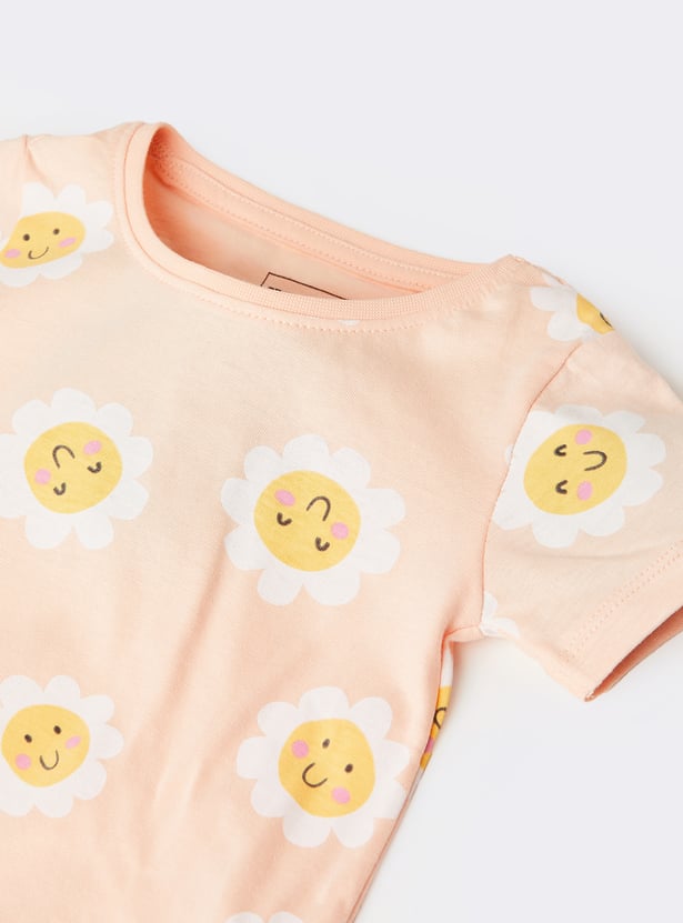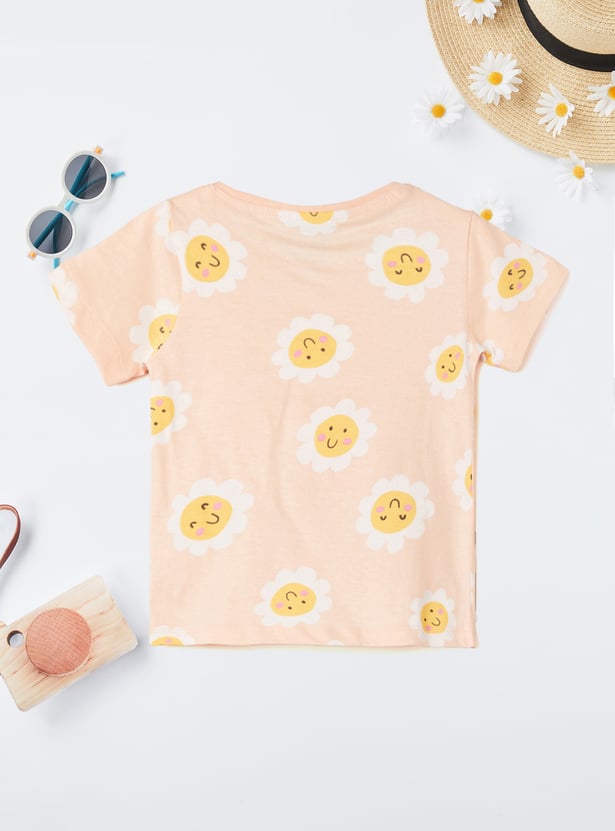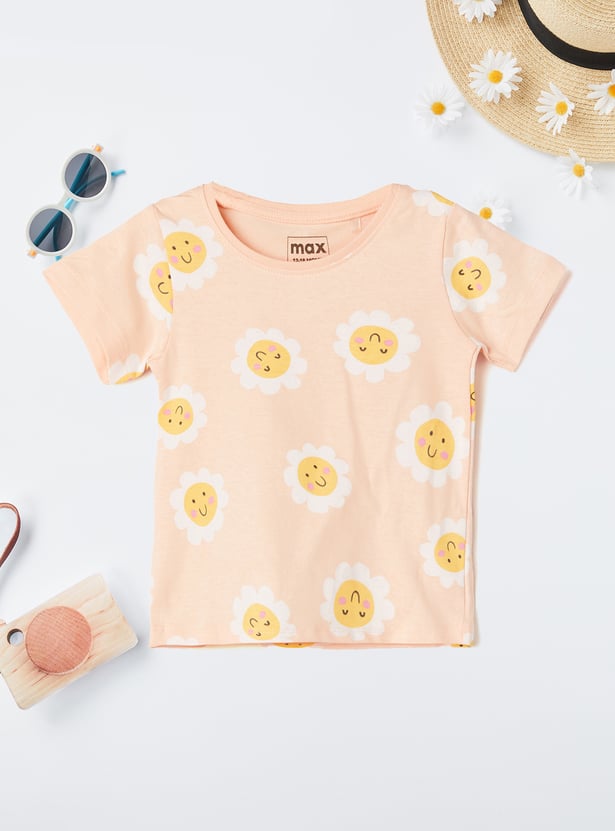 Add a fun twist to your casual wardrobe with this printed T-shirt. Featuring a round neck, half sleeves, and a straight hem, it offers a comfortable and stylish fit.