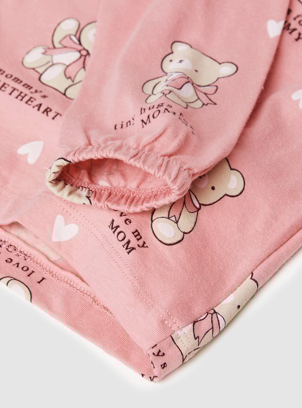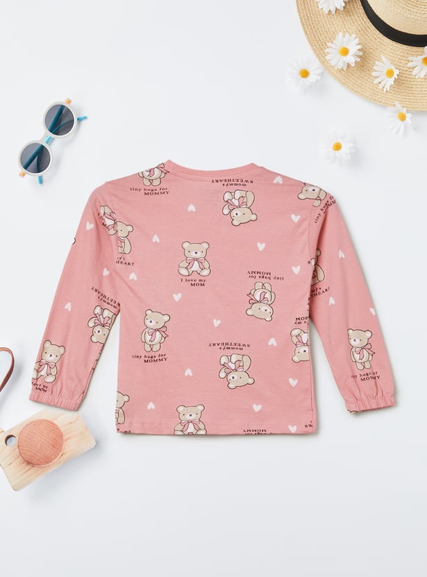 This printed T-shirt is designed with charming all-over motifs, a classic round neck, and full sleeves finished with elasticated wrists for a snug, comfy fit. A cute everyday essential that pairs effortlessly with her favourite bottoms.