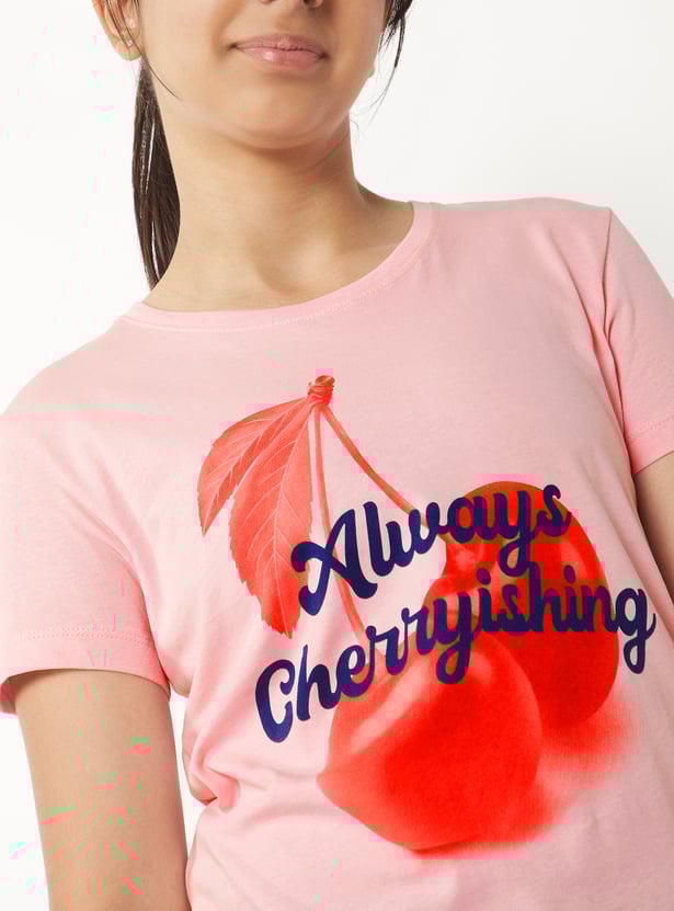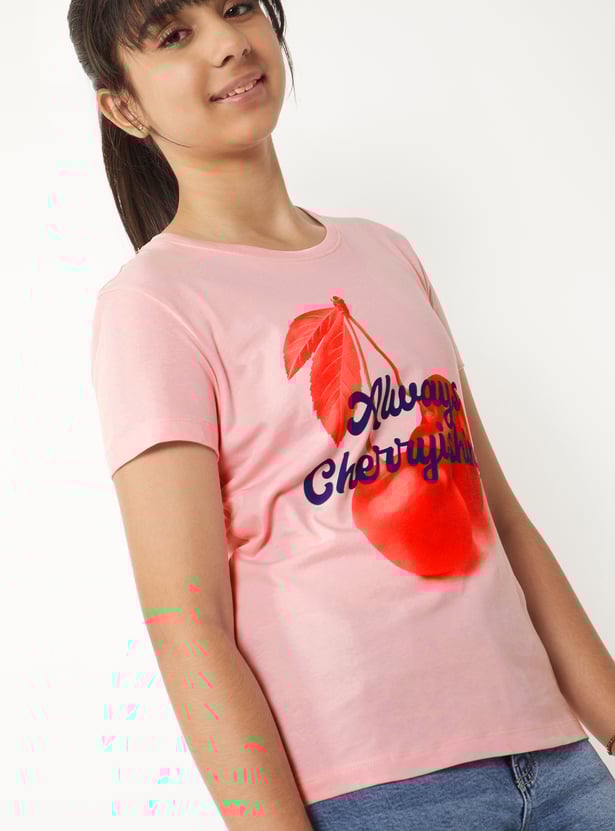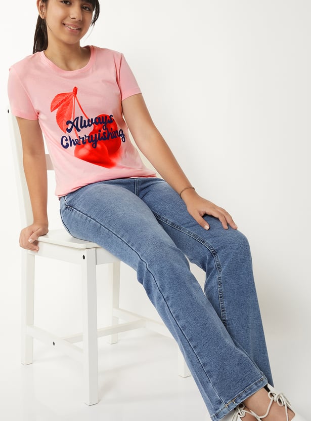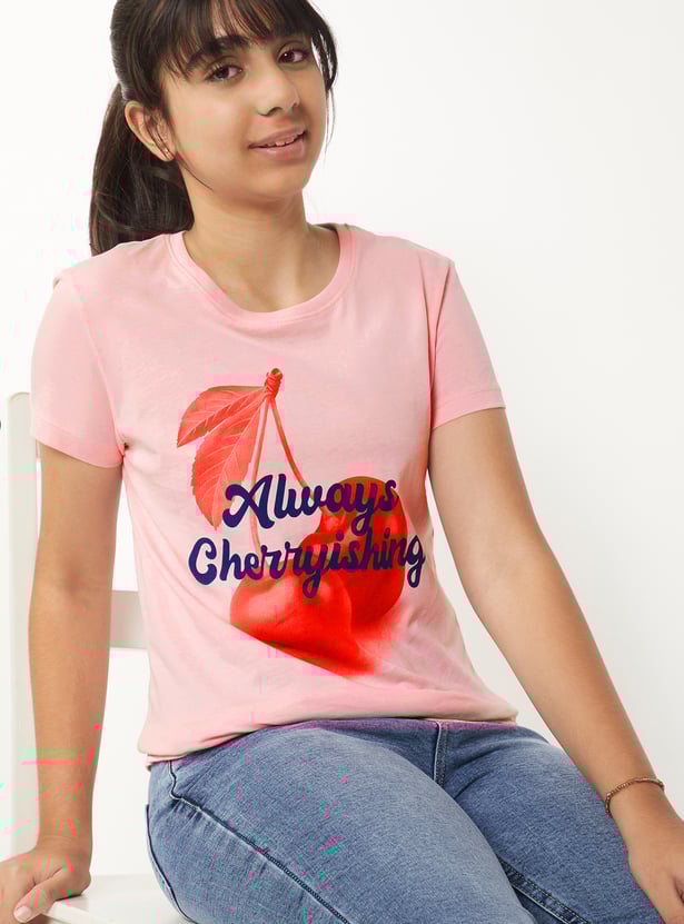 Keep it casual and versatile with this printed T-shirt, designed with a classic round neck and half sleeves for everyday comfort.