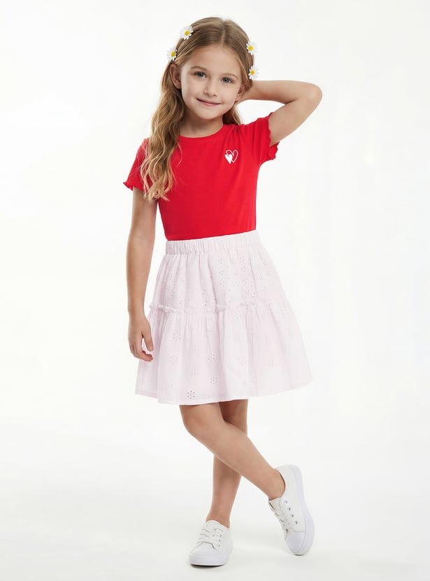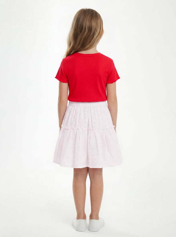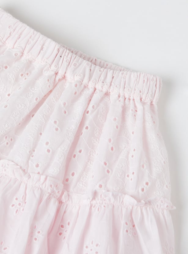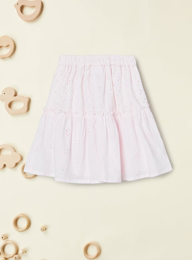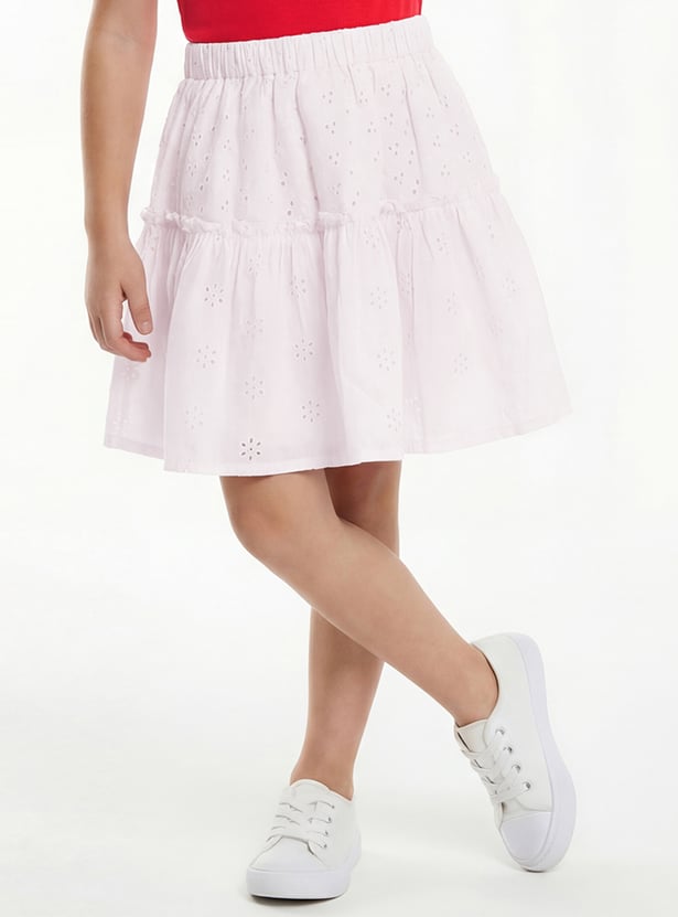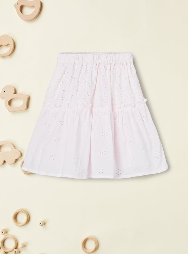Add a touch of effortless charm with this schiffli skirt. Designed with an elasticated waist for a comfortable fit, it showcases delicate embroidery that brings a feminine and breezy vibe.