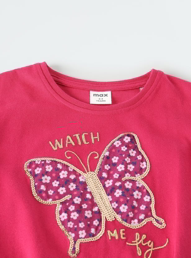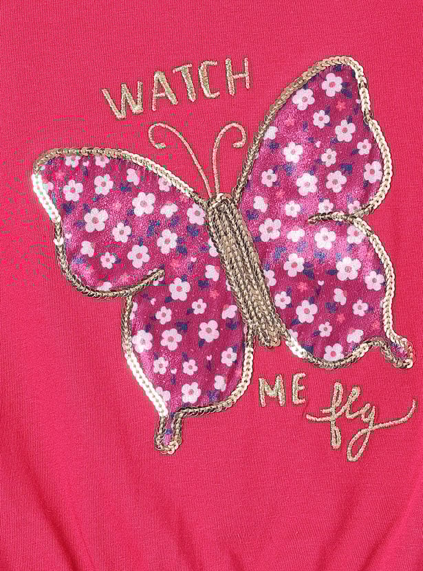 Let her spread her wings in style with this top. Featuring a beautiful butterfly design with floral print and shimmering sequins, it captures the essence of playful style. The extended sleeves and elasticated hem provide a relaxed, comfortable fit.
