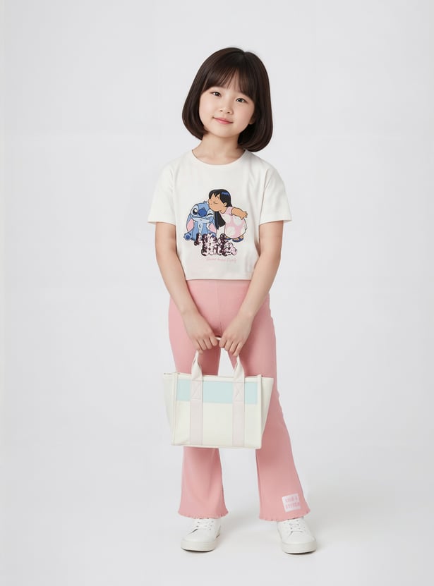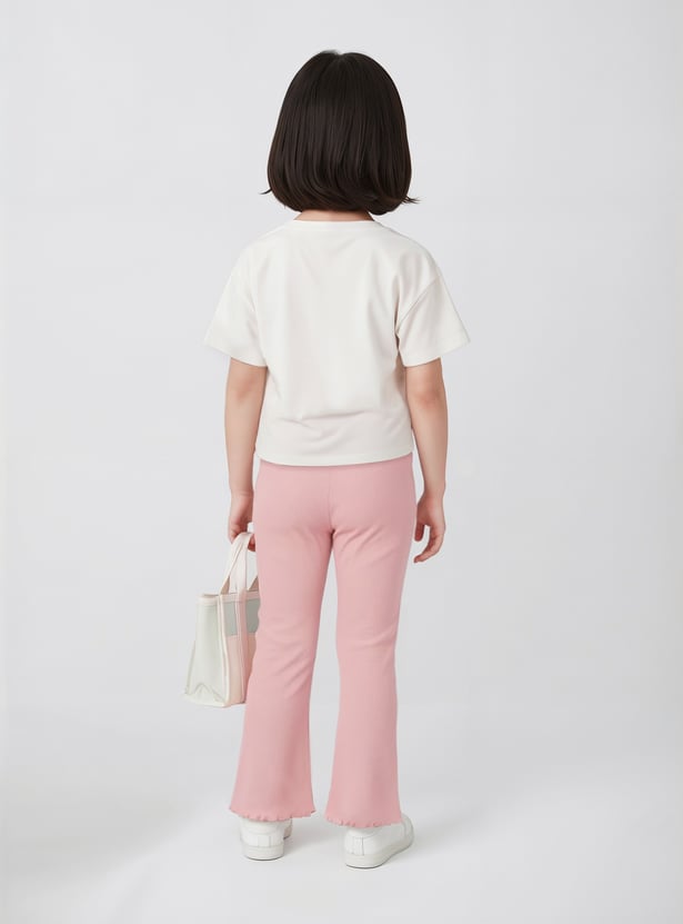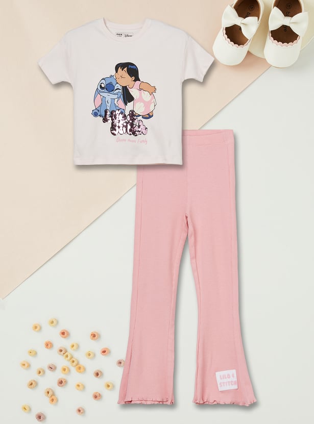 Shine in style with this sequins trousers set, featuring a sequined T-shirt with a round neck and half sleeves, paired with ribbed trousers with an elasticated waist for all-day comfort.