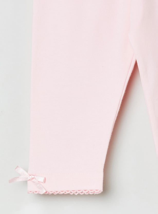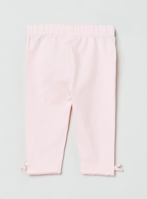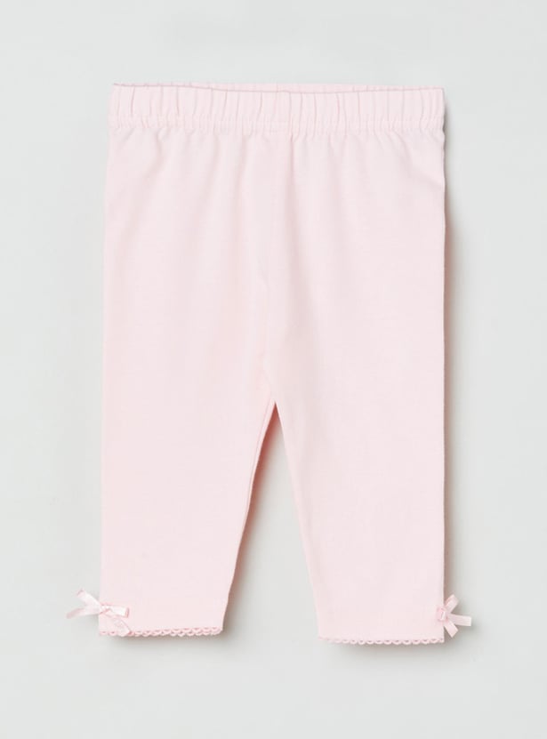 An ideal pick for a casual wardrobe, this pair of leggings are designed with a solid surface, bow detailed hem and an elastic waistline.