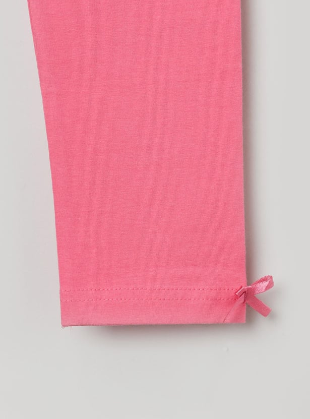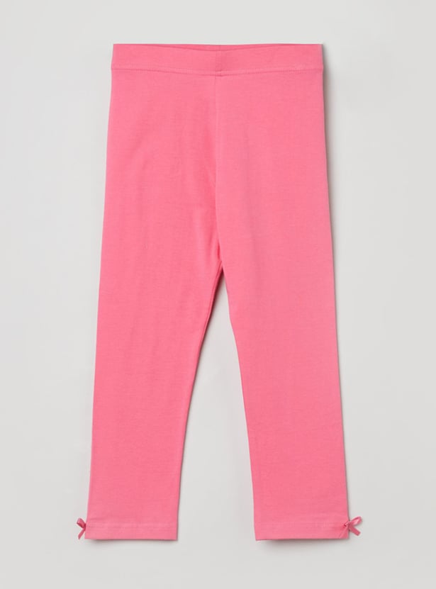 Highlighted with a solid tone, this pair of leggings is tailored with an elasticated waistband and a straight hemline to lend a blend of comfort and style to your little one's silhouette.
