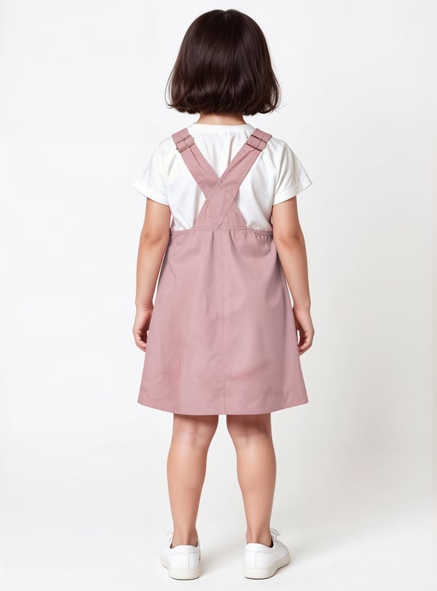Girls Solid Pinafore Dress with T-shirt