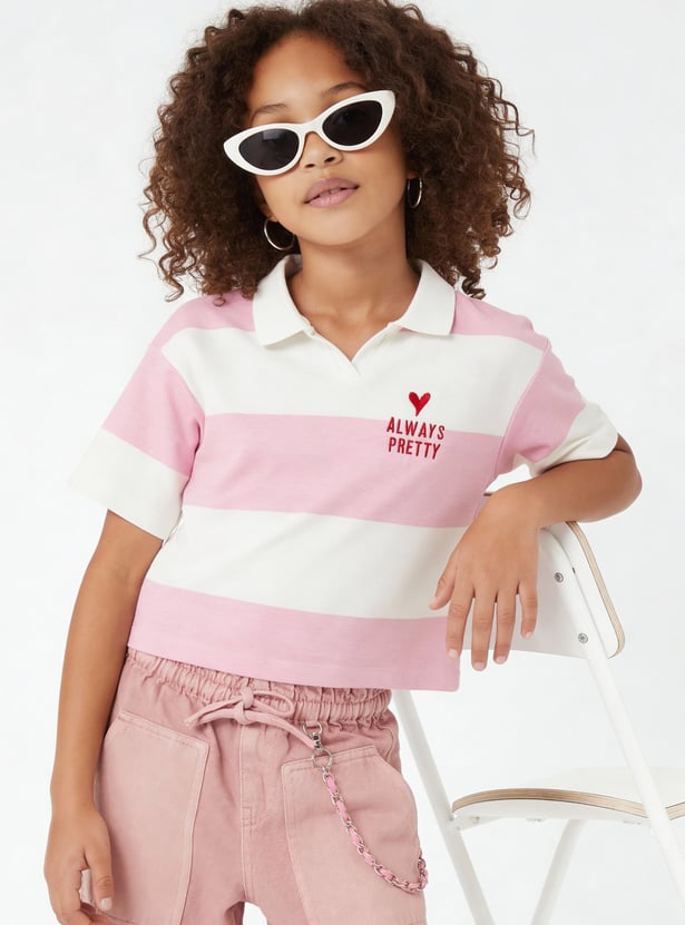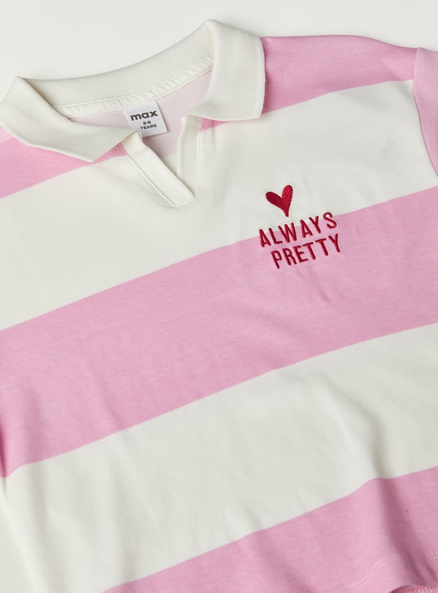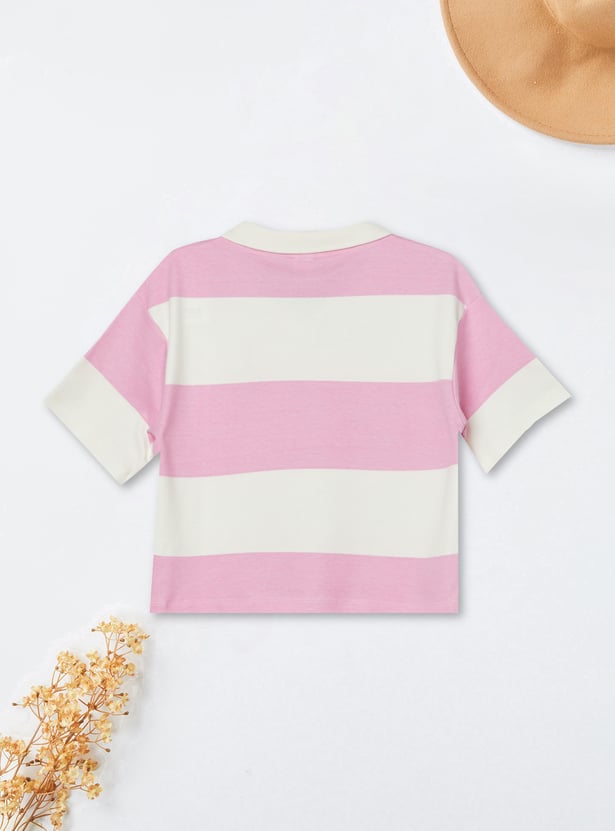 Girls Striped Johnny Collar T-shirt