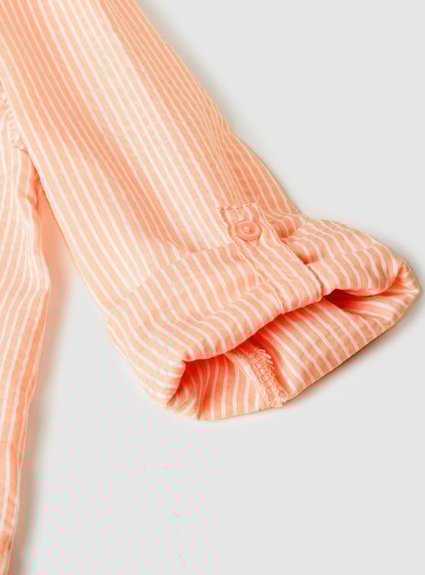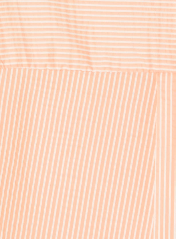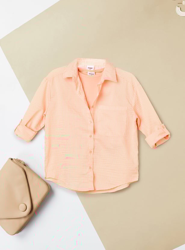 Effortlessly stylish, this oversized striped shirt with T-shirt combo is designed for a layered look. The shirt features a resort collar, button placket, and full sleeves, while the ribbed T-shirt underneath comes with a round neck and half sleeves for a balanced, casual vibe.