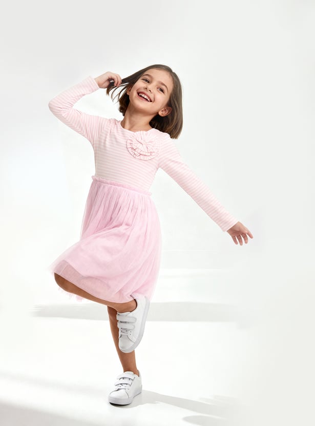 Girls Striped Tulle Dress