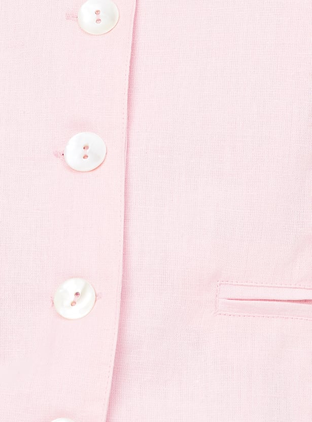 This sleeveless waistcoat helps you flaunt your best style. It features a stylish V-neck and welt pockets, adding a touch of sophistication to your wardrobe. The sleek design offers a tailored, flattering fit, while the welt pockets enhance its practical yet chic appeal.