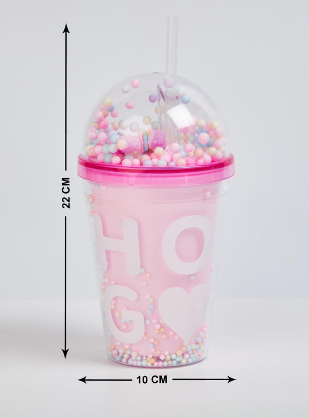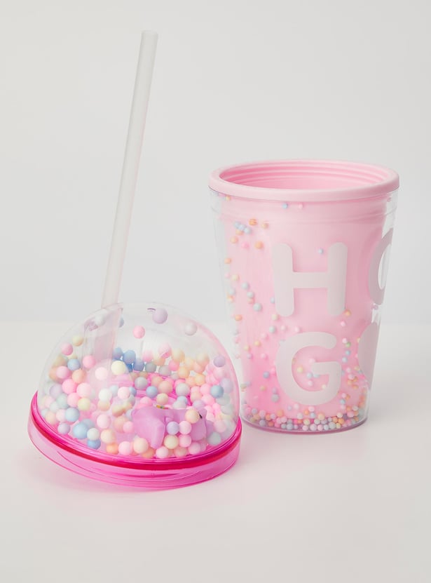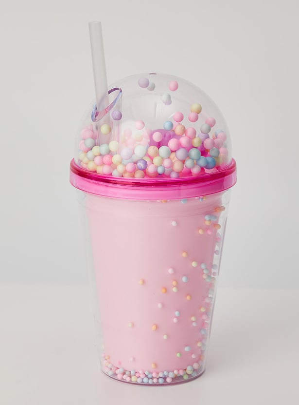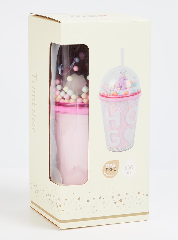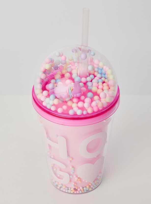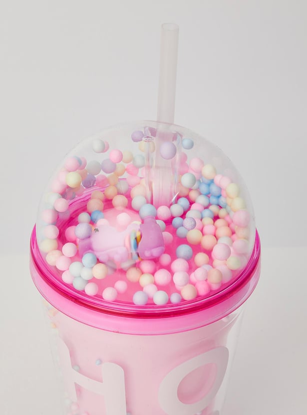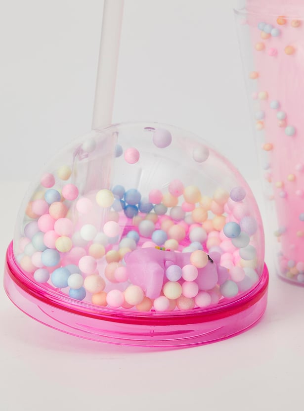 Add a pop of fun to hydration time with this tumbler. It is filled with thermocol balls that bring a party vibe to your little one's everyday life. The unicorn figurine and prints add a magical touch. This tumbler comes with a BPA-free straw and lid of convenience.