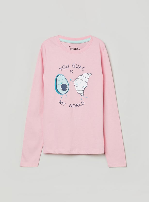 Amp up your child's wardrobe with this trendy printed t-shirt which has a round neck and long sleeves.