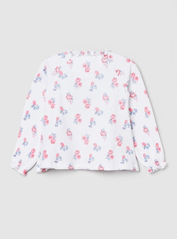 An ideal pick for a casual occasion, this top is designed with floral prints, round neckline, and full sleeves.