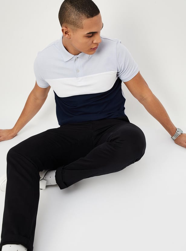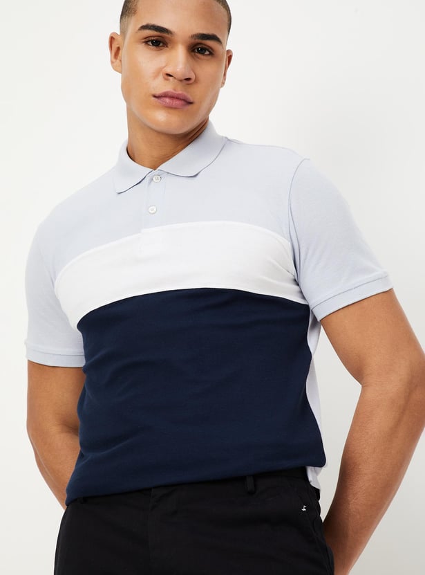 Men Slim Fit Colourblocked Polo T-shirt