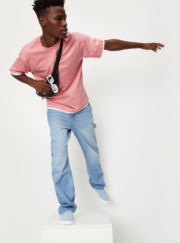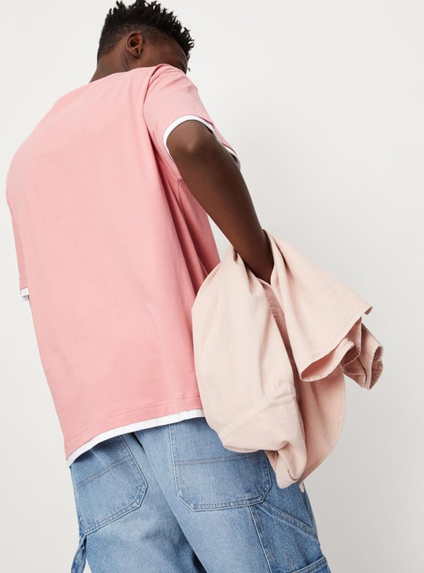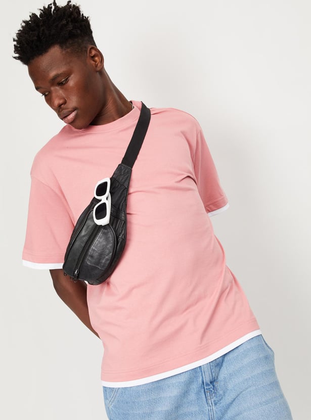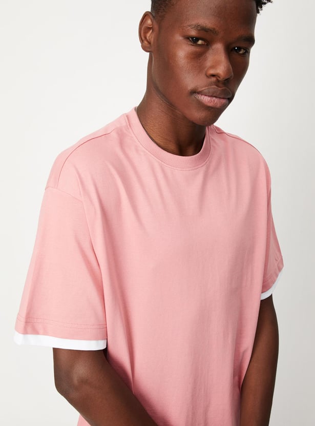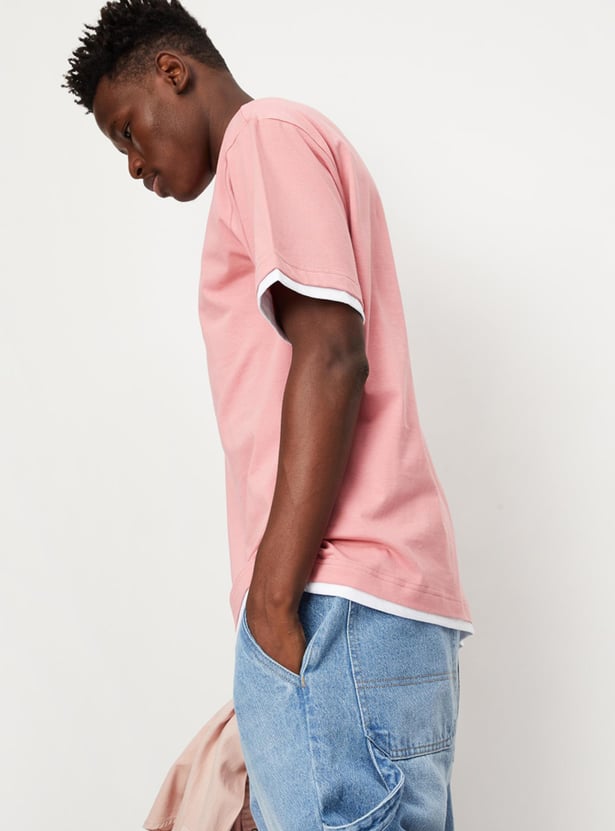 Build your basic wardrobe with this relaxed-fit T-shirt. It has a crew neck, short sleeves, and contrast trim. Pair this tee with trousers and sneakers for a summer look.