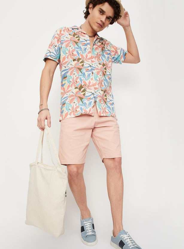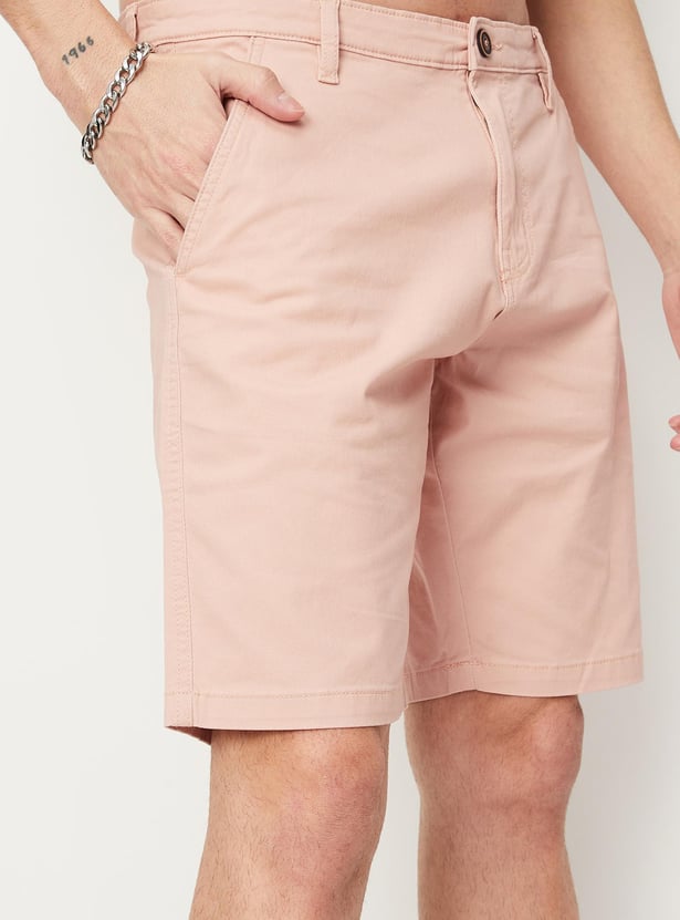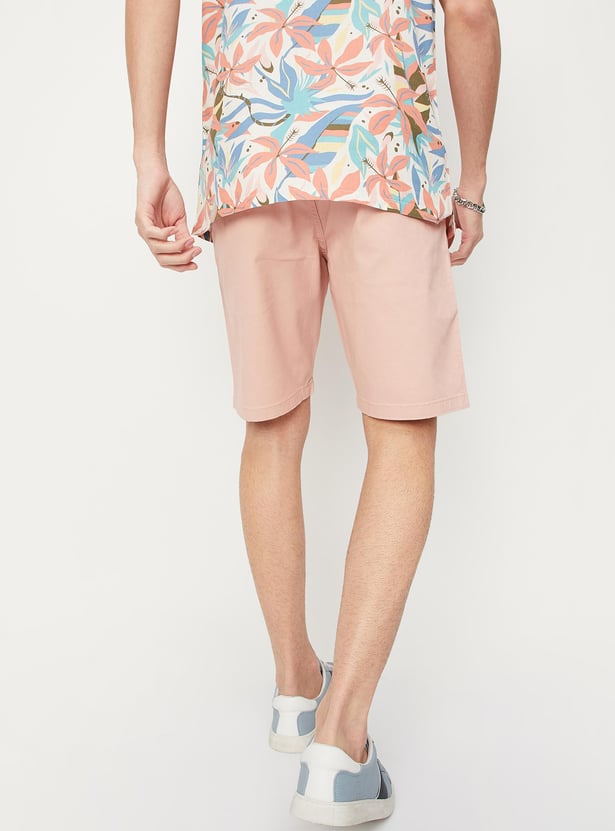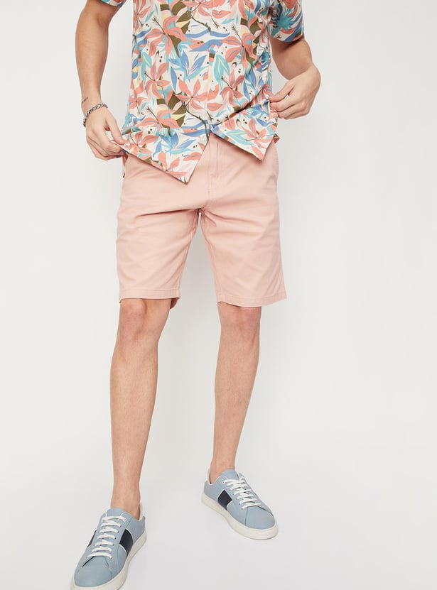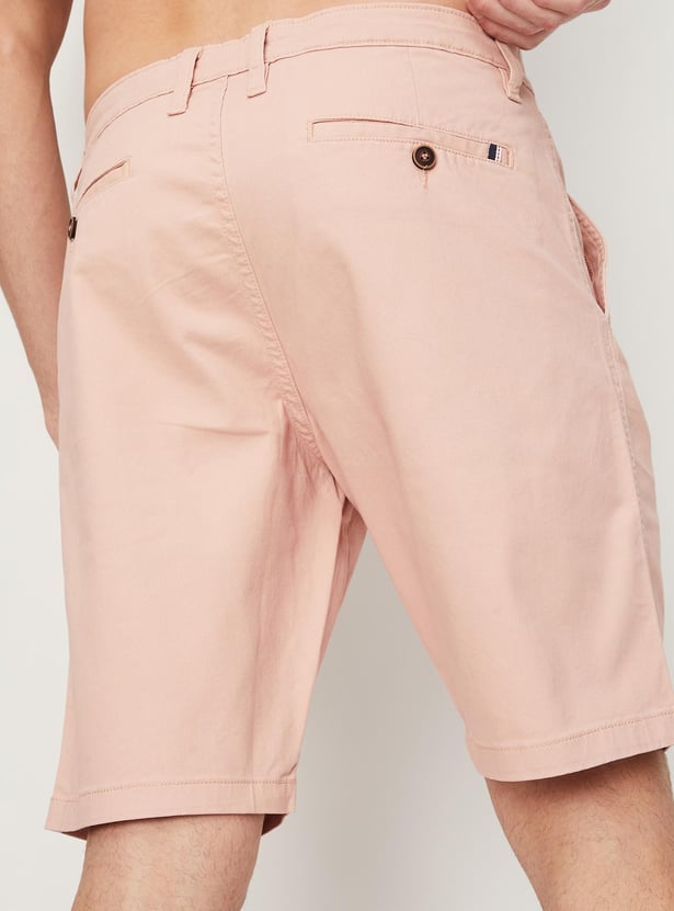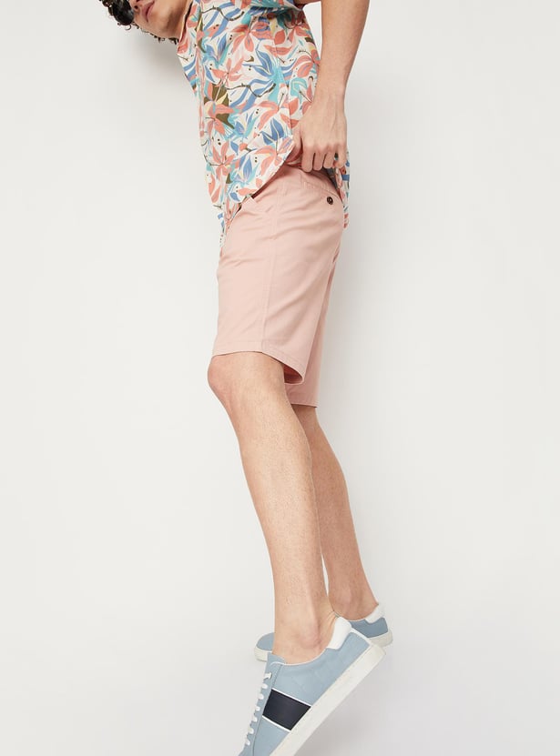Look summer ready in this pair of casual shorts. It flaunts a flat front, belt loop waist, side pockets and back buttoned welt pockets. Team up this pair of shorts with a t-shirt and lace-up shoes to make a complete look.