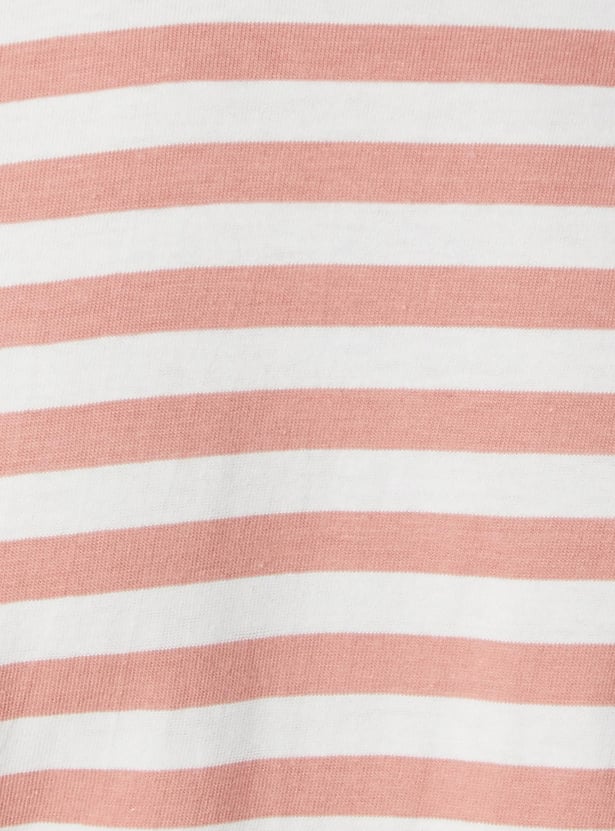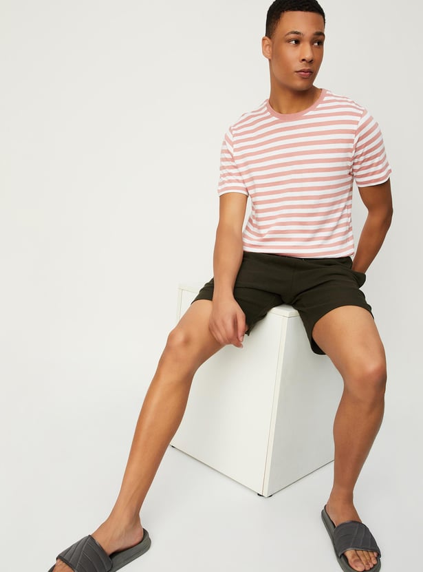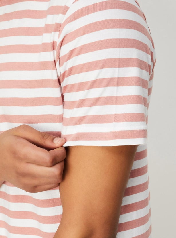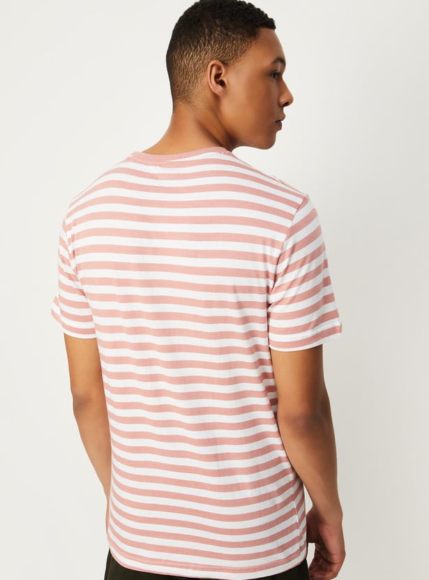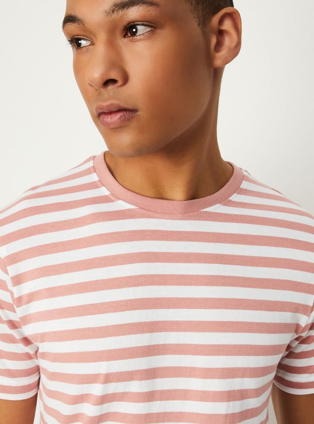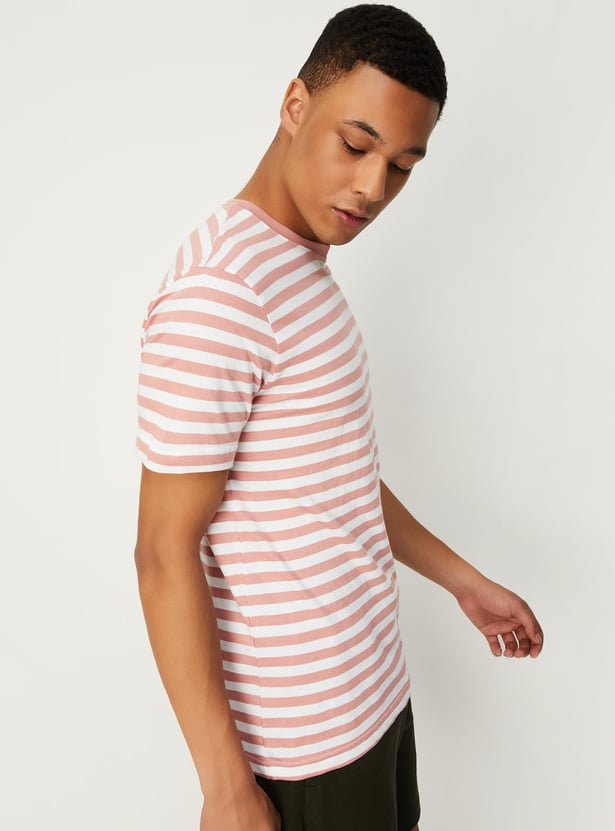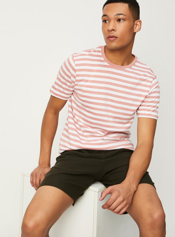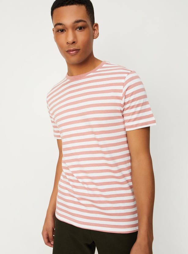 This striped t-shirt with half sleeves and crew neck, gives trendy style to simply boost your casual look.