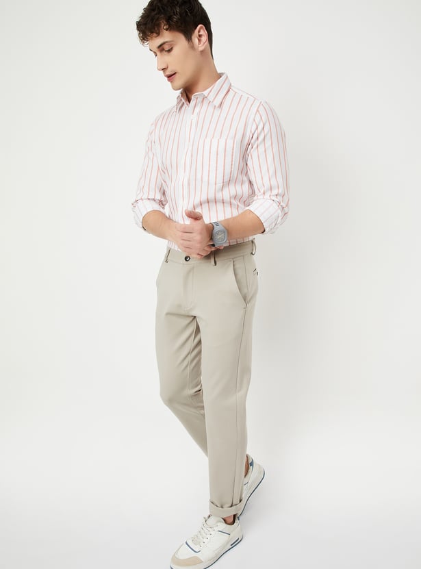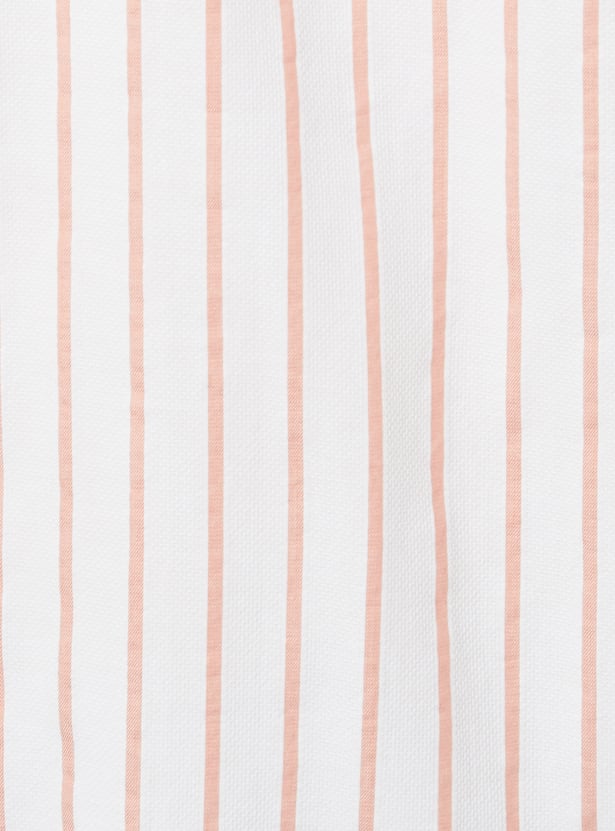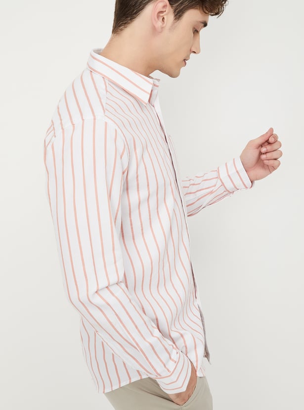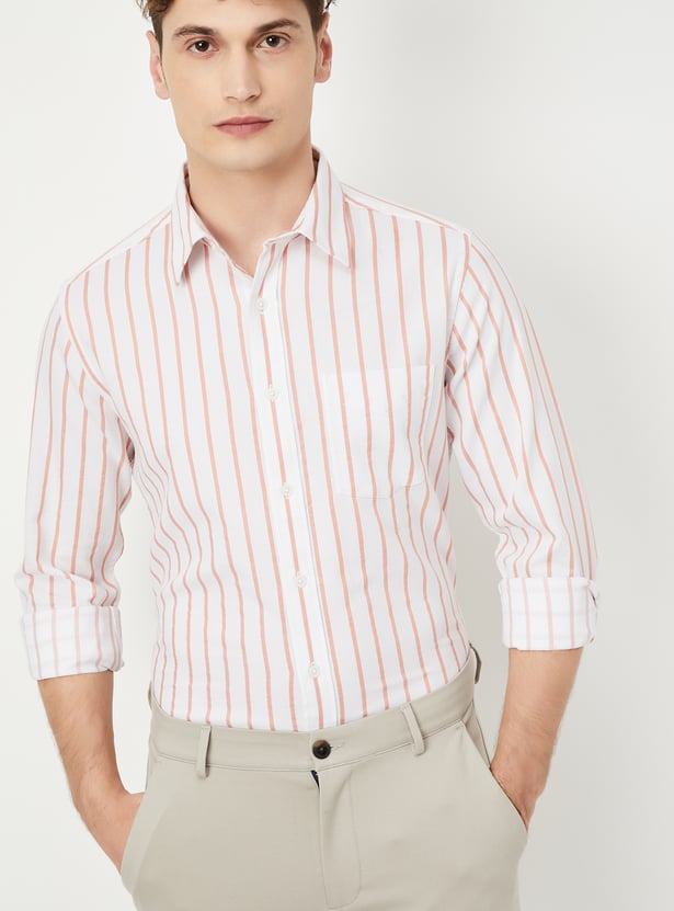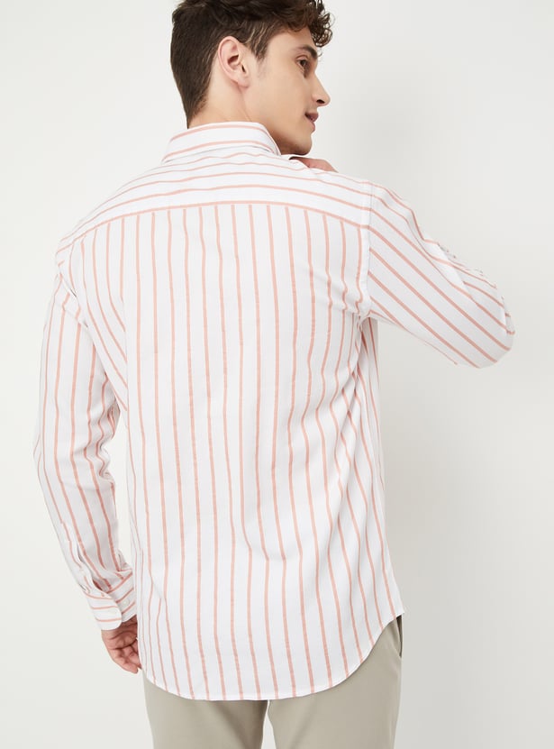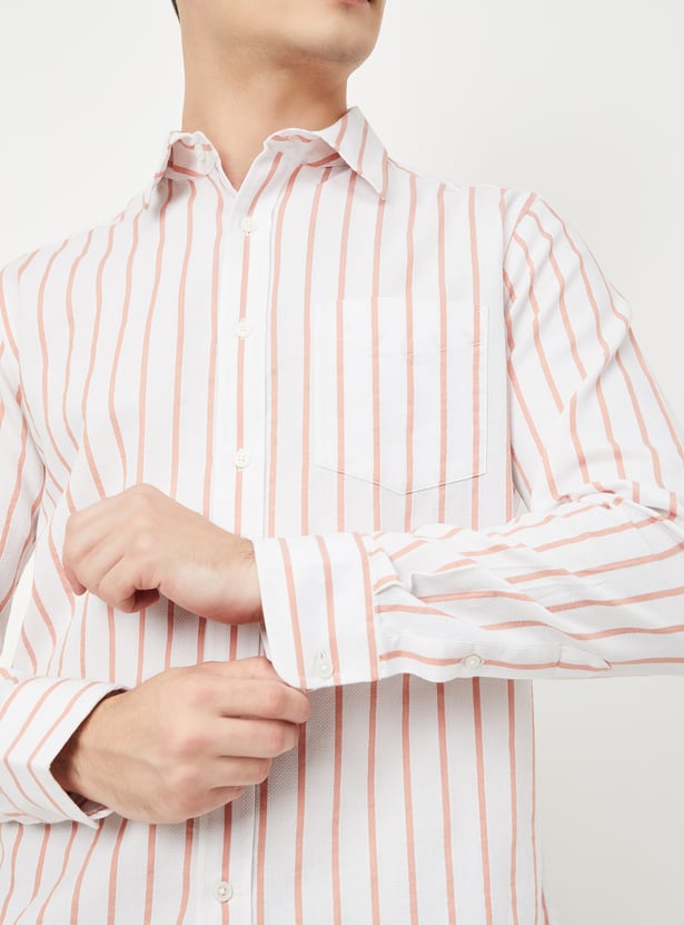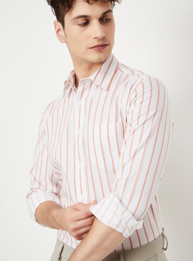 Refine your casual attire with this timeless striped shirt. Crafted with a spread collar, full sleeves with button cuffs, patch pocket, and button placket, it's a symbol of modern elegance.