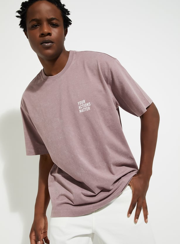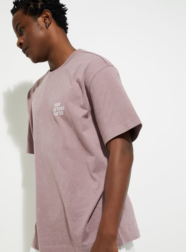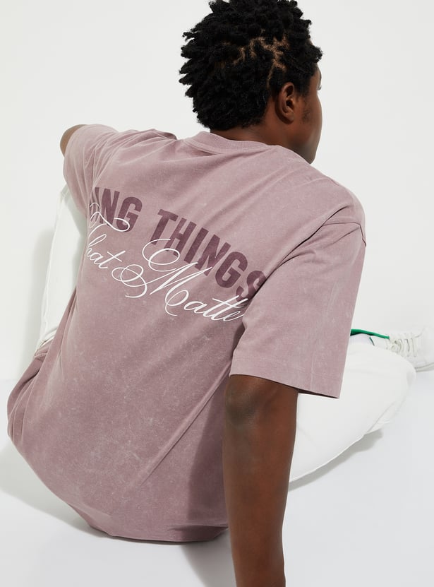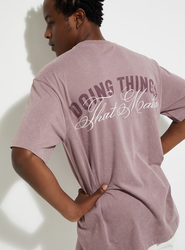 Switch up your street style this season with this T-shirt. The oversized profile offers roomy comfort and the back graphic print adds to the vibe. This tee has a crew neck, half sleeves, and a straight hem
